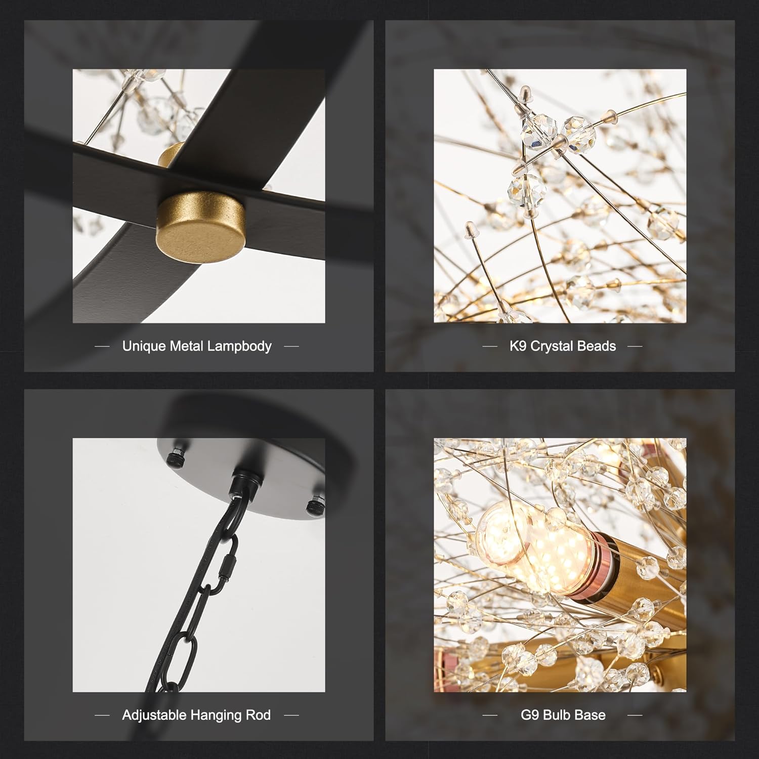 Modern Crystal Chandeliers Firework, 23.2'' Black Gold 12-Light Globe Dandelion Sputnik Chandelier, Hanging Pendant Lighting Fixture for Dining Room, Bedroom, Kitchen, Entryway, Foyer