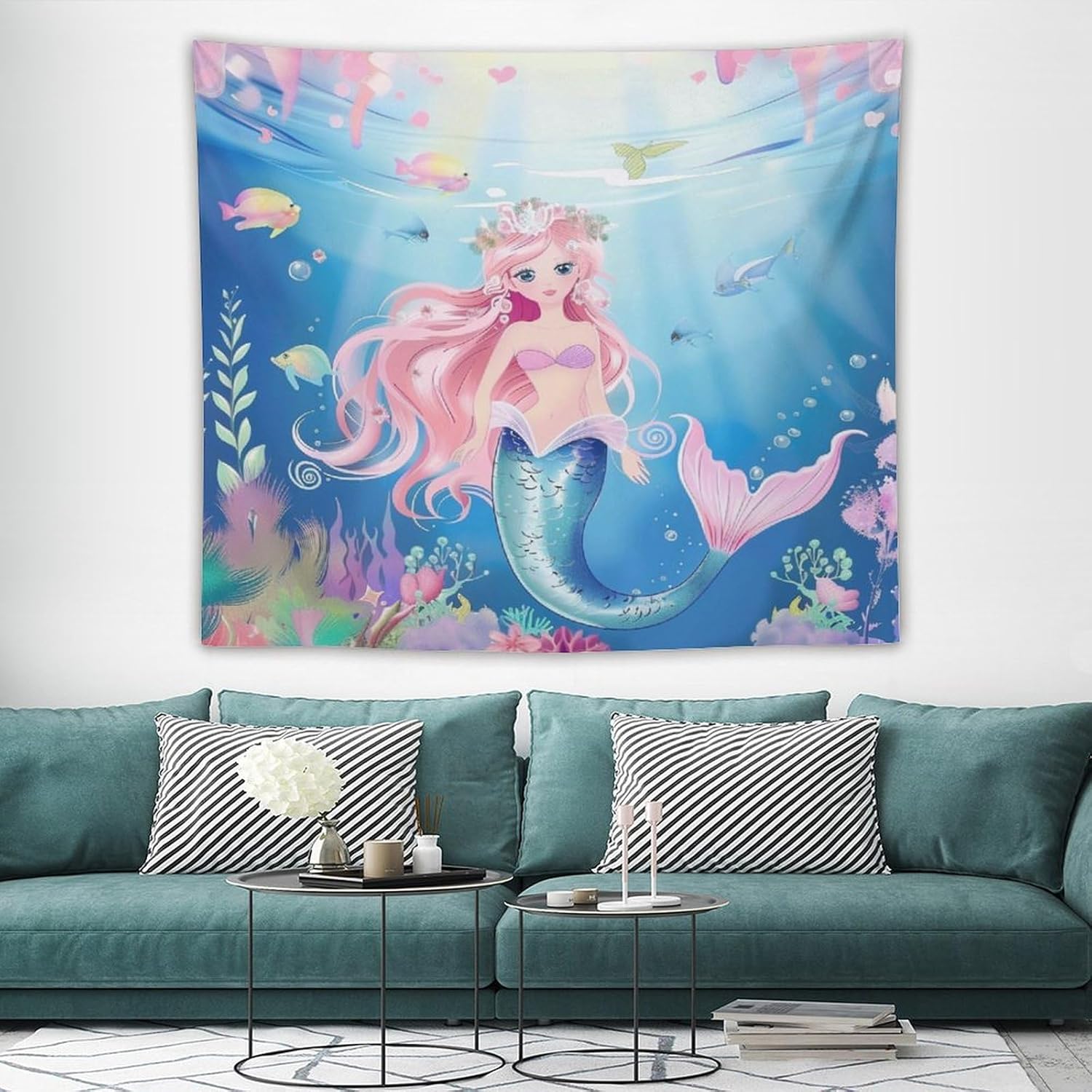 HZOHNAGO Mermaid Girls Tapestry Watercolor Mermaid Princess Pattern Printed Wall Tapestry Wall Hanging for Bedroom Living Room Dorm 60" W x 50" H