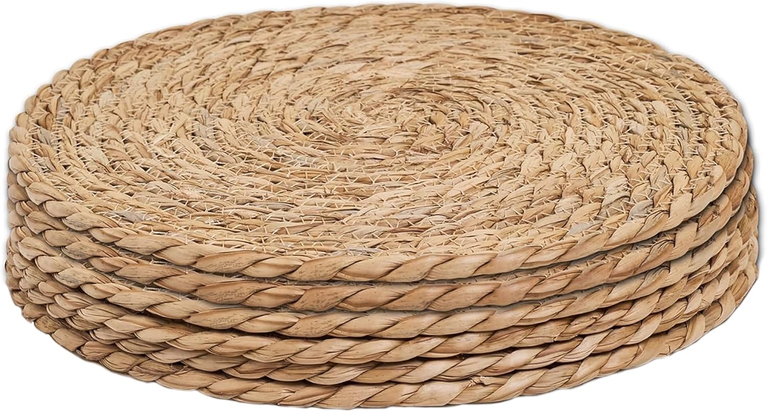 - 【Natural Design&Handcrafted】: Woven Placemats feature a sturdy woven design and round silhouette, This Round Placemats have very tight woven cattail grass (water hyacinth)design and well sewn placemats are carefully handcrafted and made of natural 100% water hyacinth, Easy Cleaning: Simply clean with damp cloth then store in a dry place.