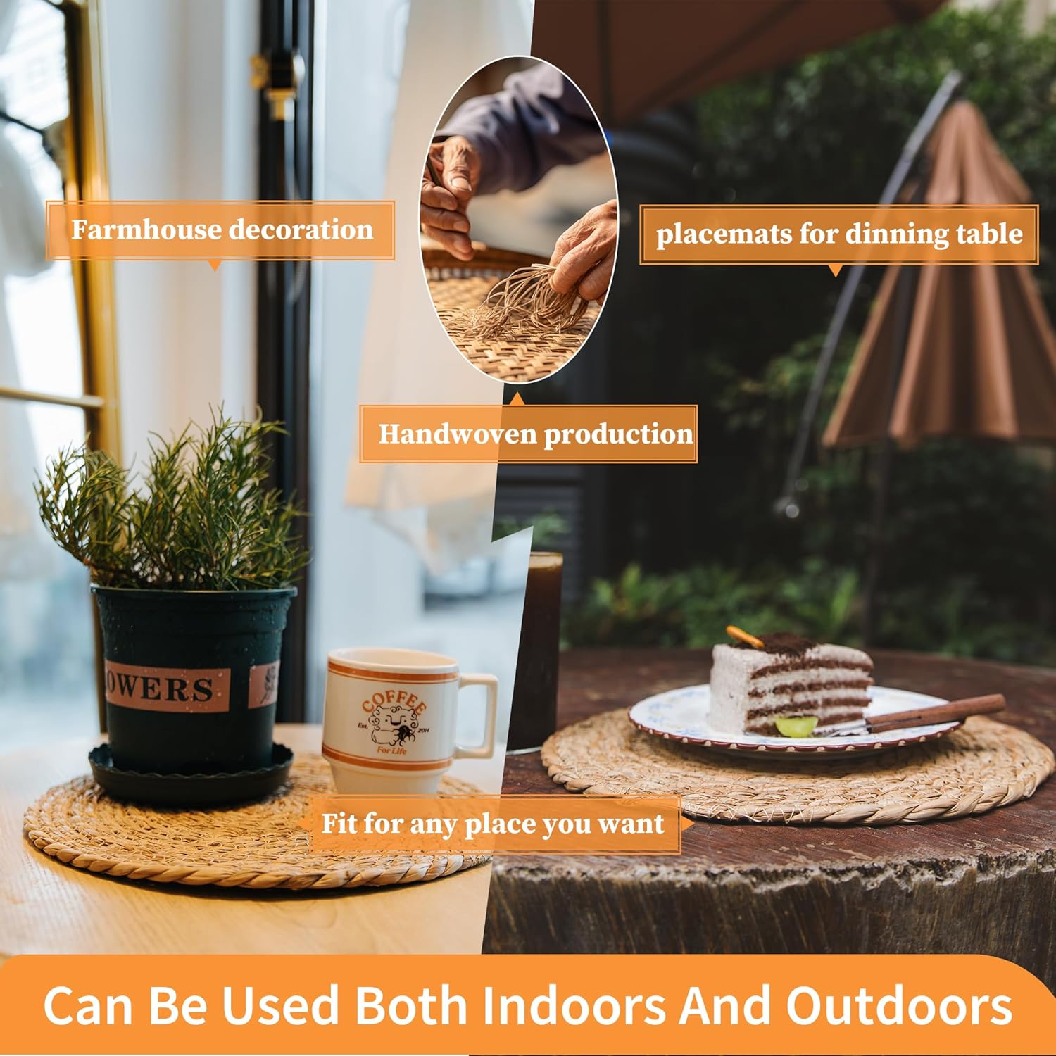 - 【Practicality&Delicate Decoration】: Farmhouse stylish rattan placemats to add more fun vibes to your kitchen table, dinning table,coffee time. A good decoration of your home, bedroom, living room,dining hall, kitchen, and outdoor. Defined Deco woven placemats can be used to including birthday, Easter, Christmas, housewarming, graduation or parties etc.