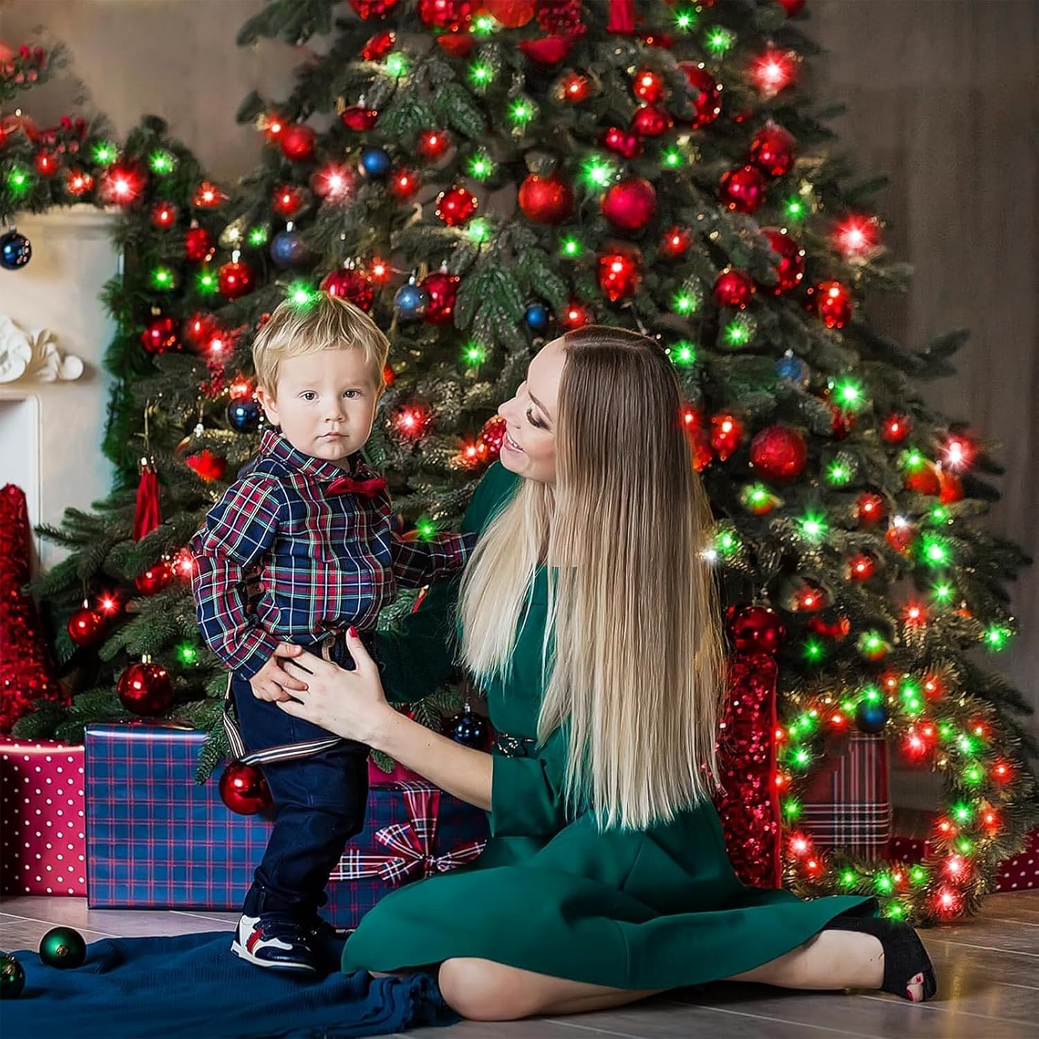 - Waterproof Fairy Lights Plug in: The red and green Christmas lights design with IP44 outdoor waterproof, can withstand wind, snow, rain and extreme weather. String lights are equipped with a UL certified 29V low-voltage plug ensures the safety. It's safe for family with kids or pets!