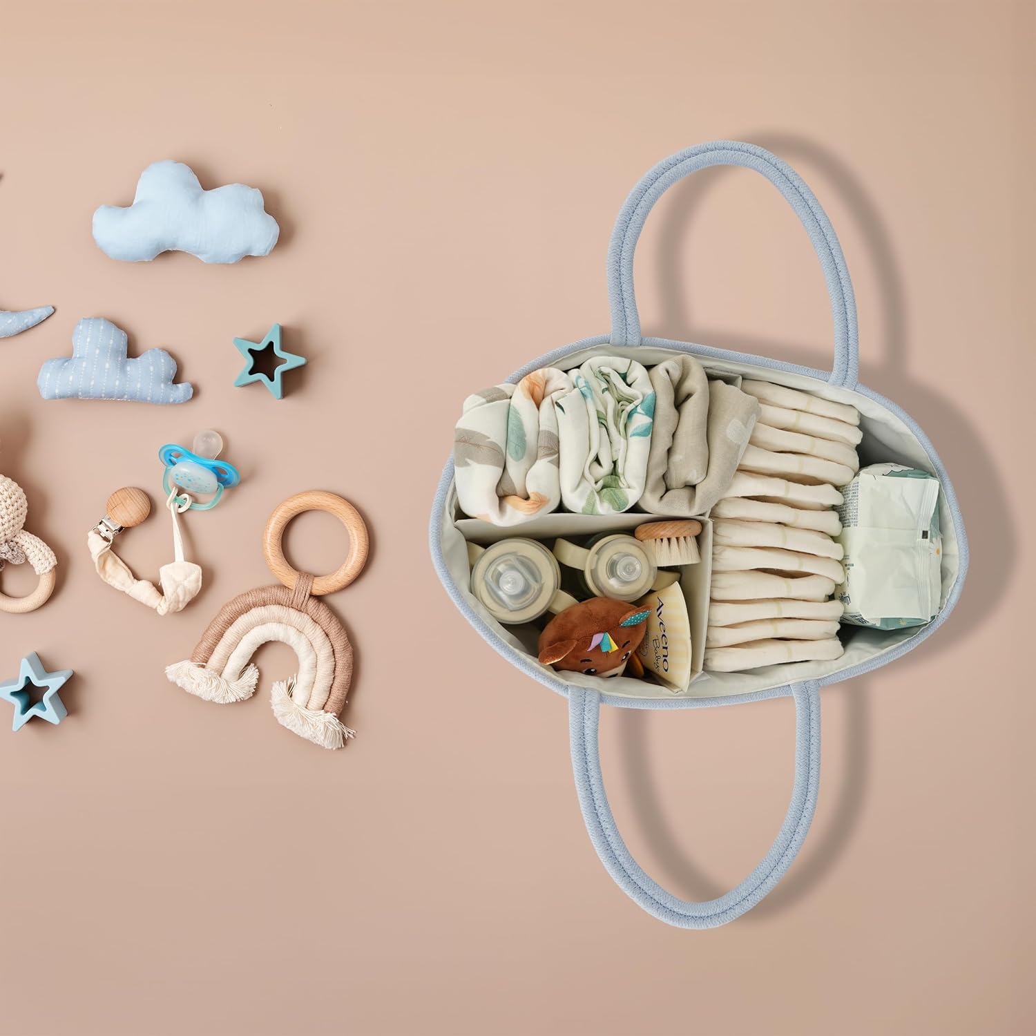Diaper Caddy Organizer Cotton Rope Baby Basket Nursery Storage and Portable Tote Bag for Car Ideal Baby Shower Gifts and Registry Must-Have for Newborn Essentials Large blue