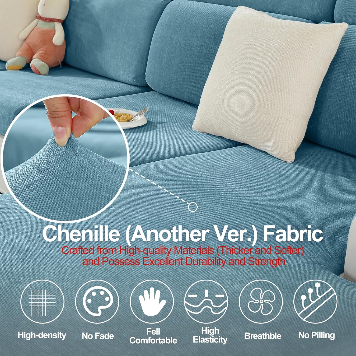 - 【Year-Round Use】Compared to other jacquard materials, the Chenille fabric couch slipcover with back cushions features a simple and refreshing design without intricate patterns, making it highly resistant to aesthetic fatigue. Additionally, it boasts excellent breathability and comfort, making it ideal for year-round use. Whether it's summer or winter, this cover can keep your sofa feeling comfortable and fresh.