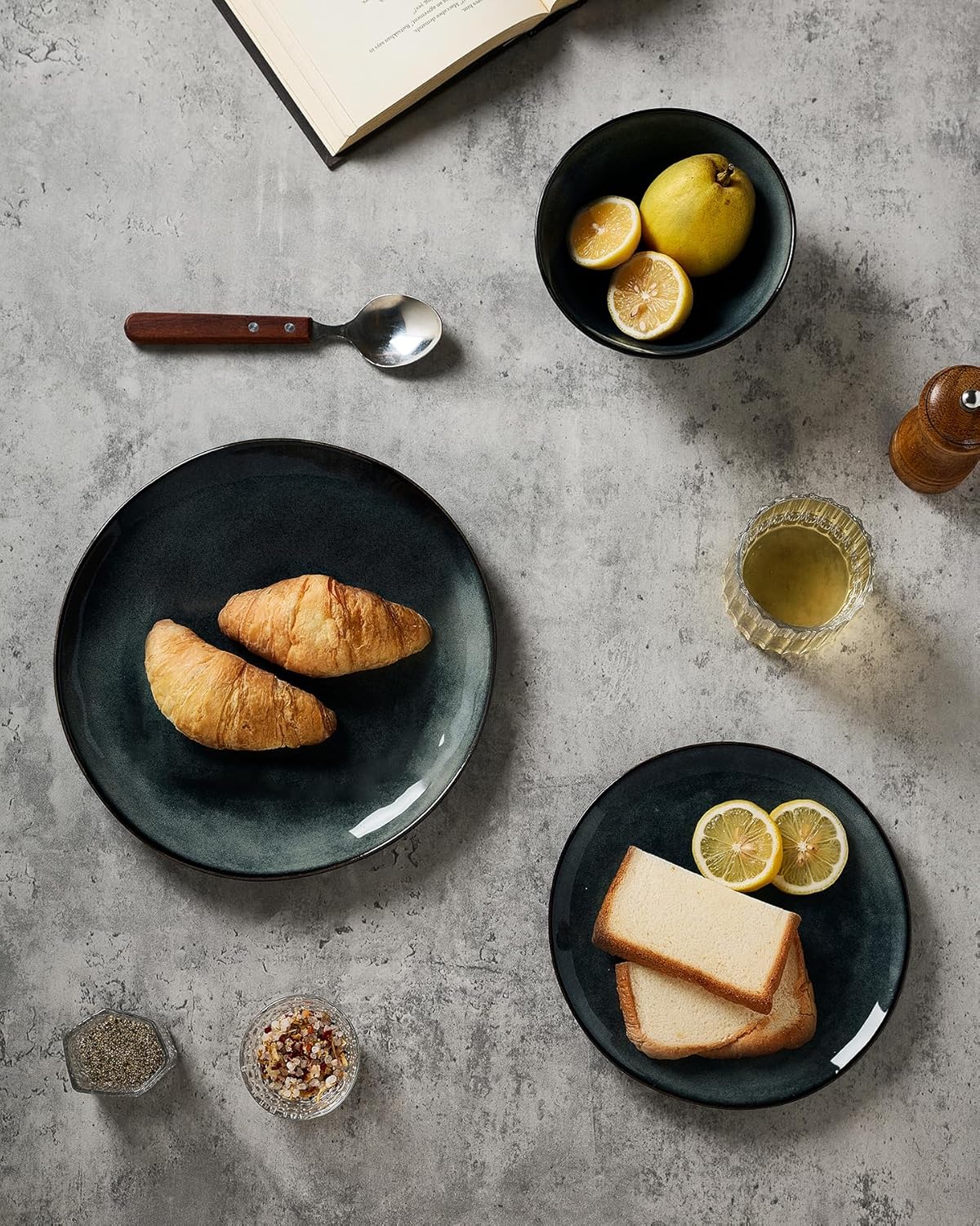- 【Sturdy and Enduring】Ocean Series tableware set is made of premium stoneware, which is fired by high temperature and mix of all-natural clays. Each piece is sturdy and enduring