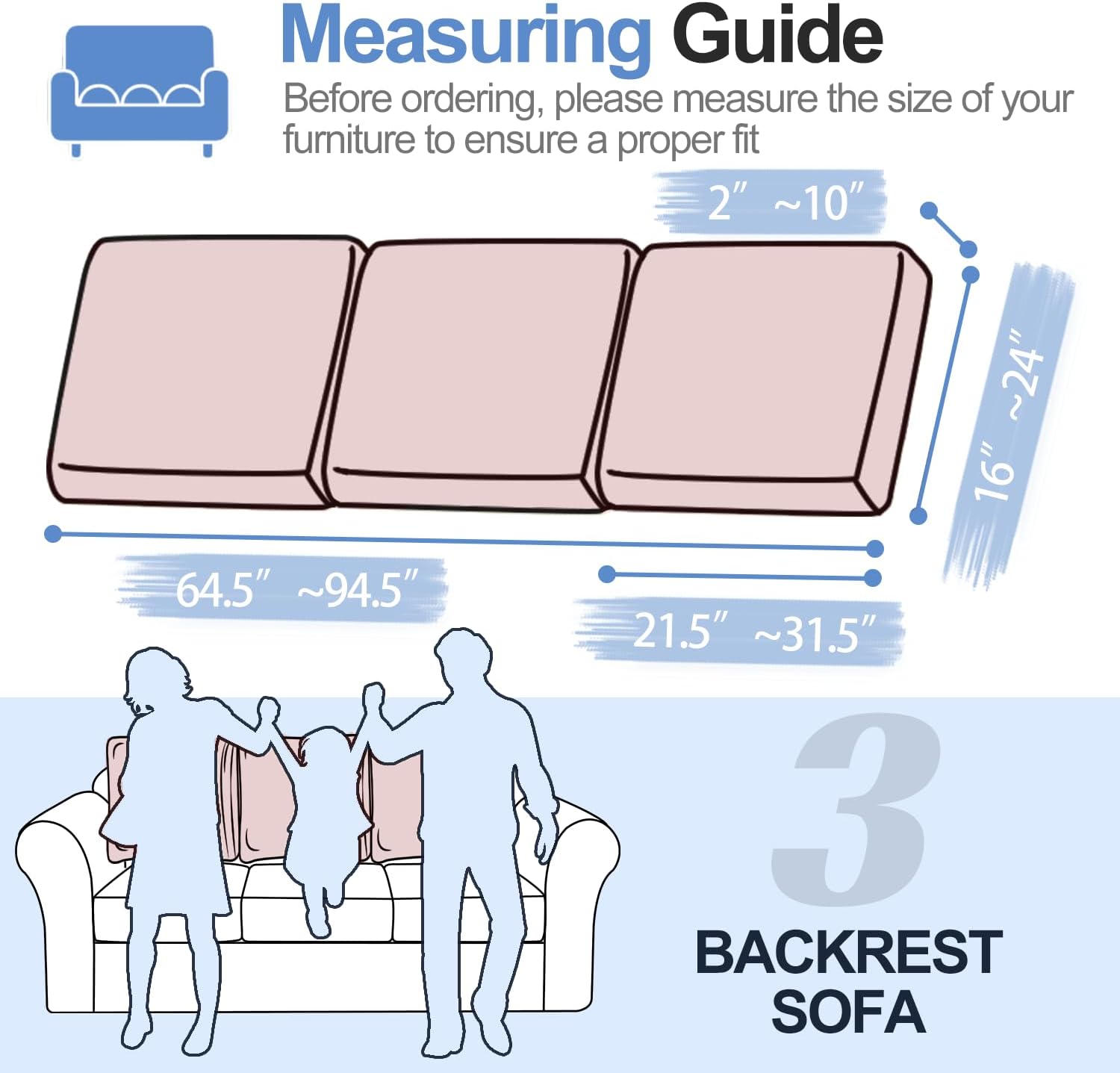 - 【Easy Care】The 3 piece sectional couch backrest covers are stain-resistant and easy to clean. They can be easily wiped clean with a damp cloth to remove any stains. Additionally, they are easy to disassemble and can be machine washed. They should be washed gently, separately, in cold water. However, bleach should not be used, and ironing should be avoided.