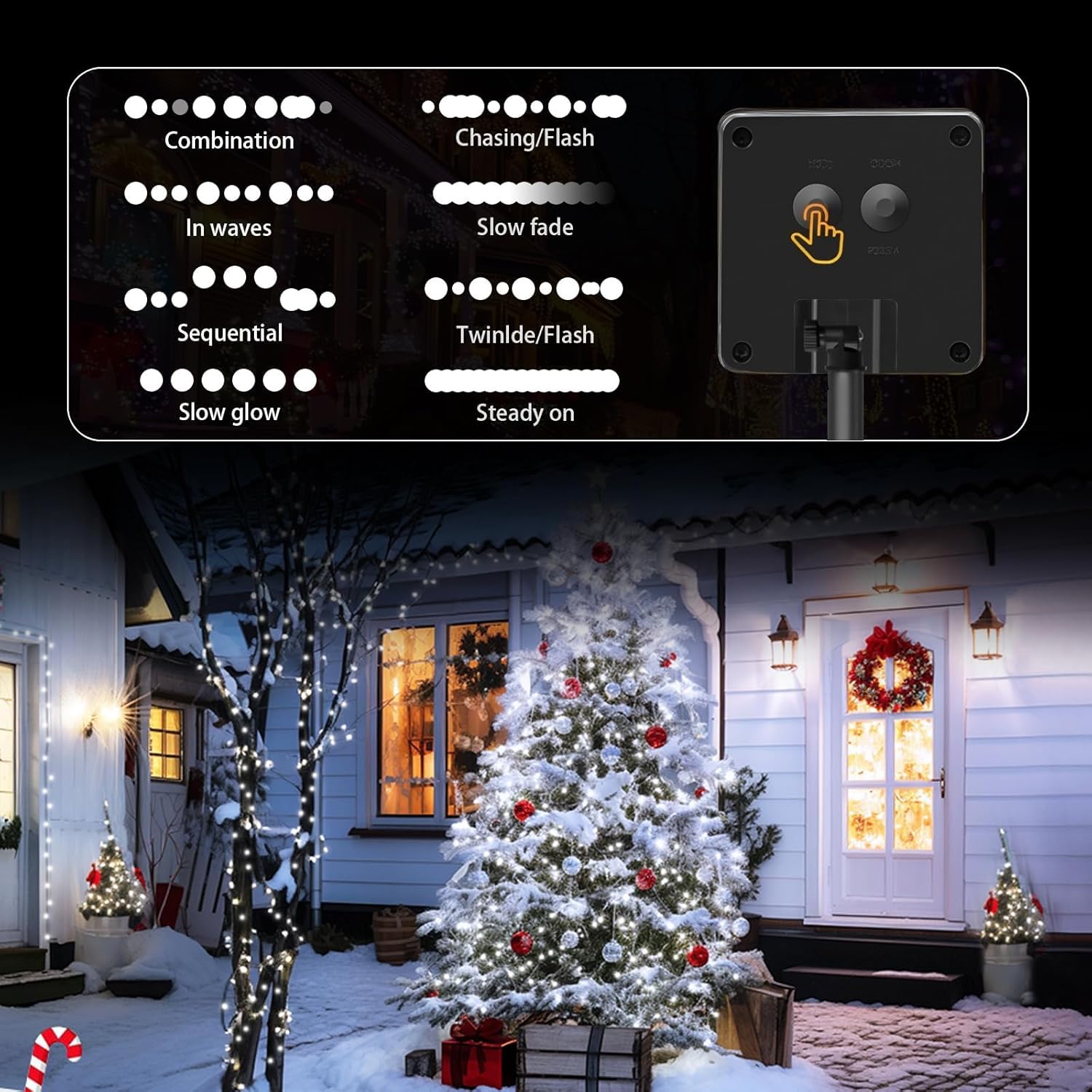 - 【8 Modes & Memorized Light Sensor】Press the mode switch, there are 8 different modes which can be adjusted by the "Mode" button on the back of the solar panel. The outdoor solar light strings also have a memory function that remembers the last set of modes. They utilize light sensing technology, which means they can turn on automatically at night. Now you don't have to reset them every day!