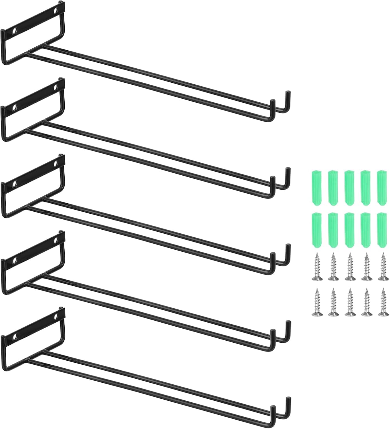 uxcell 5Pcs Wine Glass Rack, 11.81 Inch Iron Wine Glasses Rack Under Cabinet Stemware Rack - Wall Mountable Wine Glass Holder Storage Hanger for Bars Coffee Restaurants Kitchens, Black