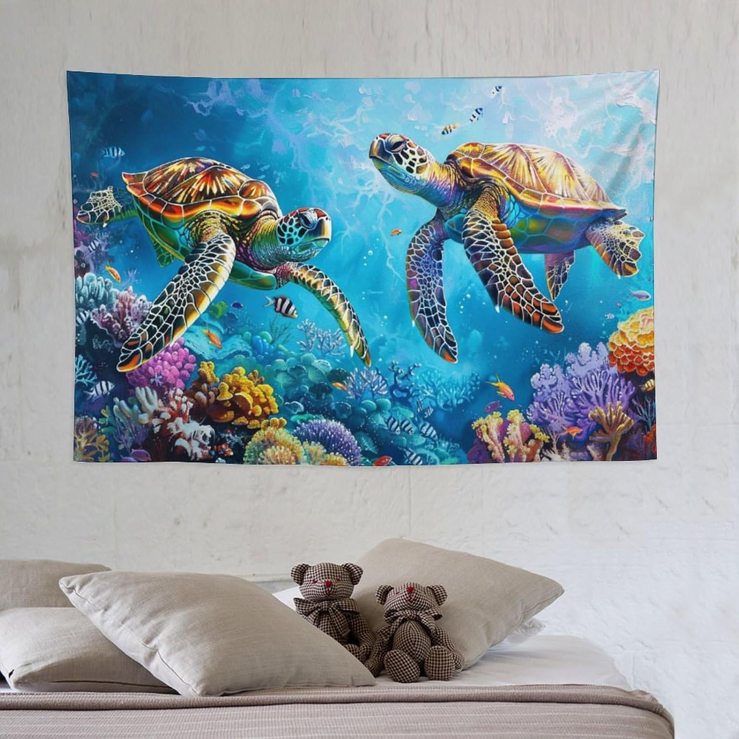 Sea Turtle Tapestry Ocean Tapestries Fabric Wall Hanging Aesthetic Space Coastal Indoor Outdoor Wall Art Tablecloth Bedspread Decoration for Bedroom Dormitory Living Room Home Decor 40"x60"