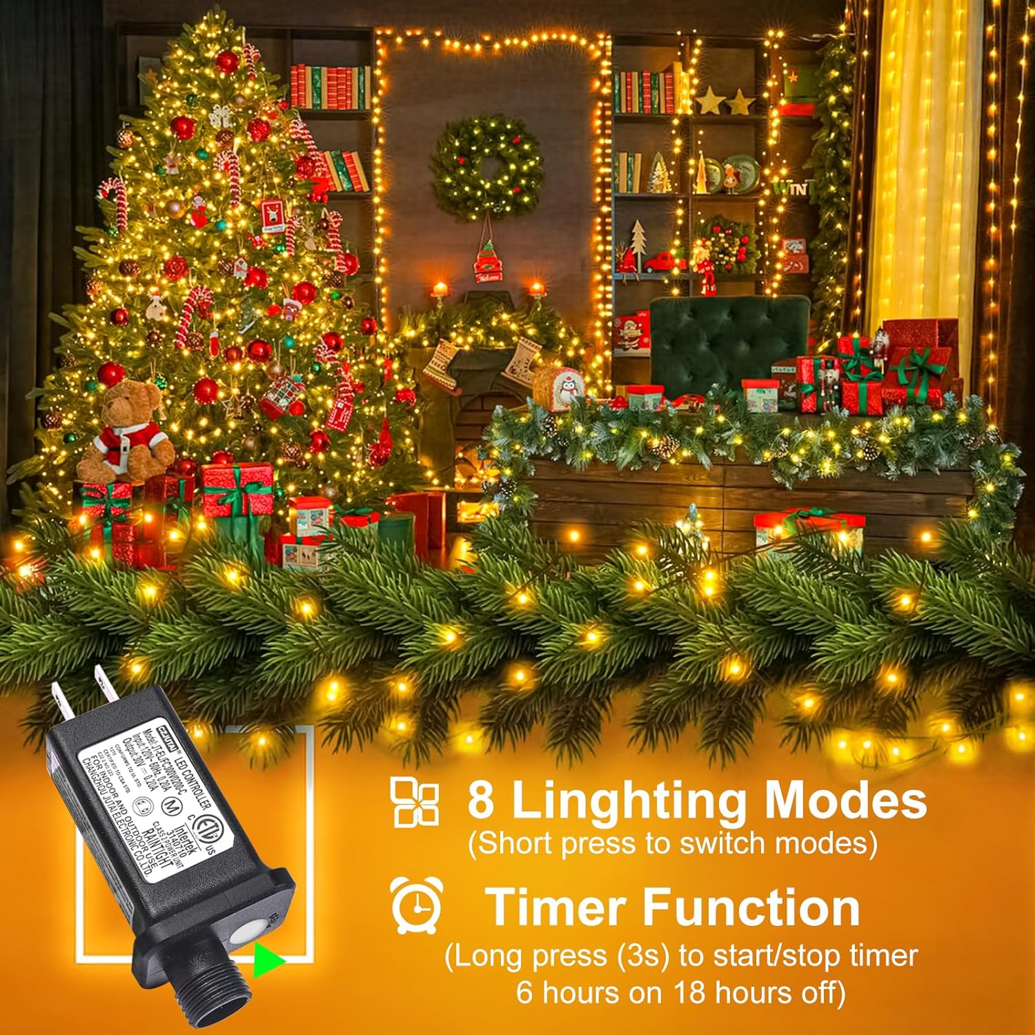 - ăConnectableă: Each Christmas tree lights with male and female safe plug, you can be easily screw, connected up to 5 strands, enough to cover a larger area.This Christmas light is equipped with timer function, 6 hours on and 18 hours off a day. Wrap our twinkle lights around a Christmas tree or plant, the green wire will blend better into the night, ideal for Christmas decorations.