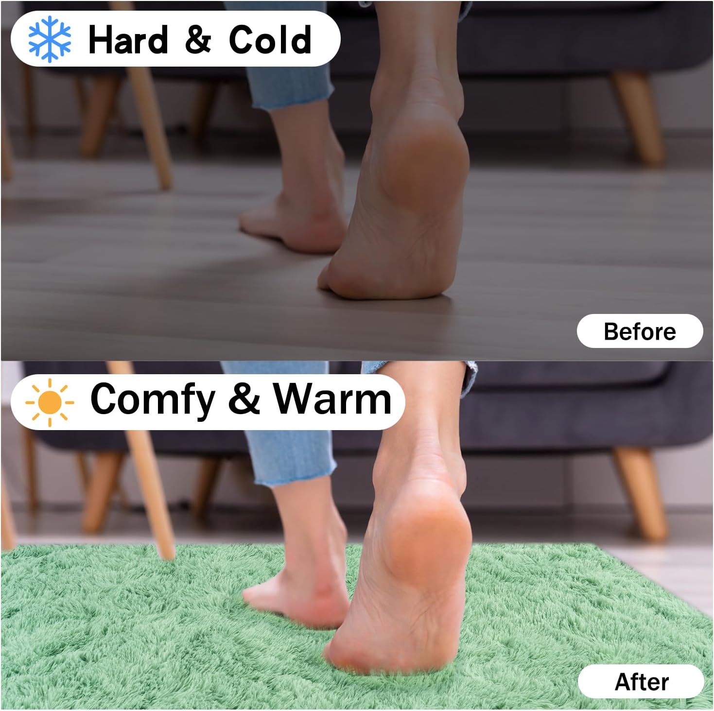- Rezutan Area Rugs-Soft Fluffy Rug:The Rezutan shag area rug is crafted from durable microfiber, ensuring a plush and incredibly comfortable experience. Its 1.7-inch high pile surface is dense and velvety to the touch, while the 0.3-inch memory foam provides superior cushioning, isolating you from the cold ground and offering soundproofing benefits. Because of the plush fur on the Soft Fluffy rug, you’ll feel like walking on the clouds when walking barefoot on the large bedroom rugs.