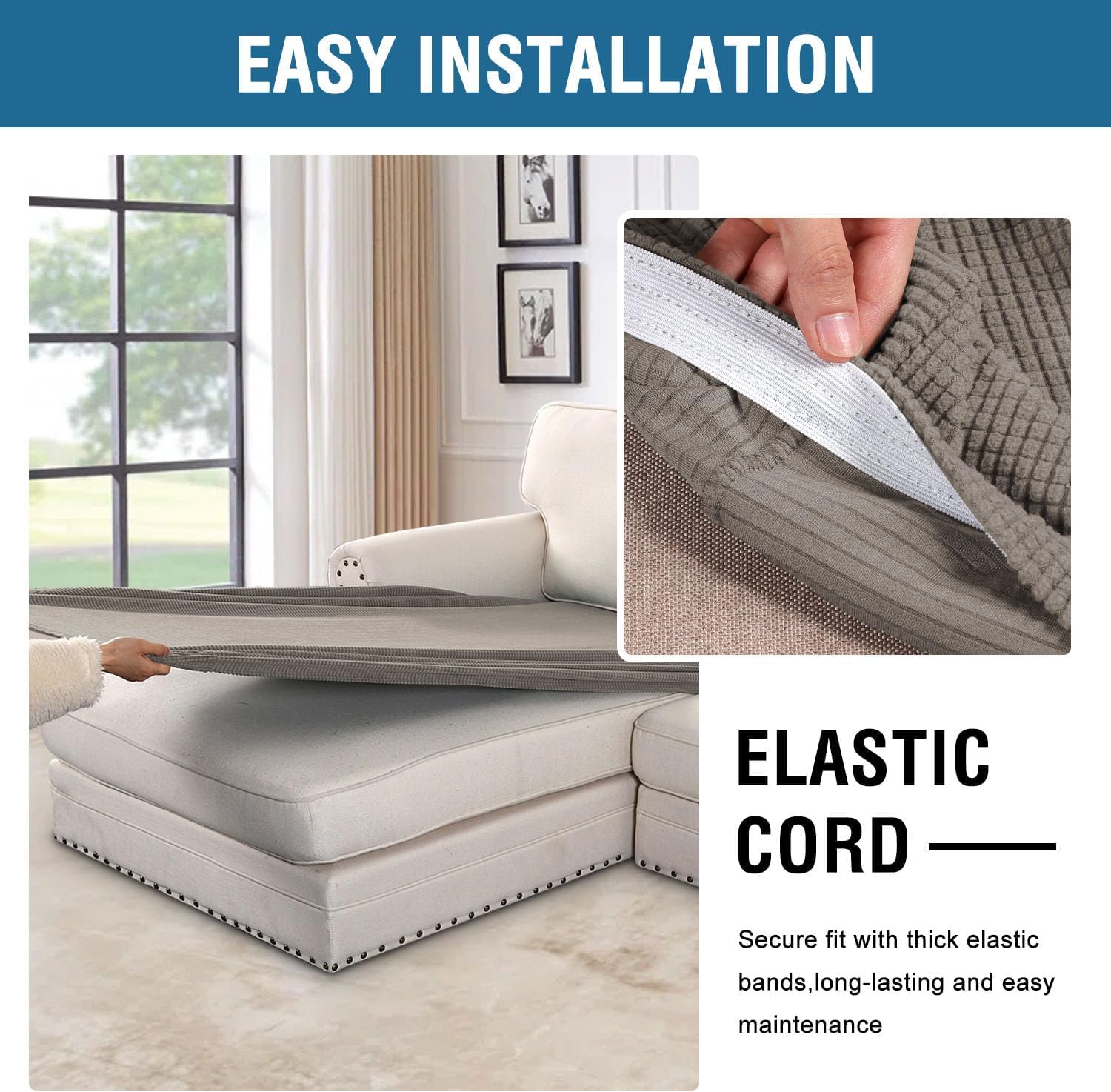 - GREAT FIT: Set of 1. This innovated cushion slipcover is crafted from durable and soft high stretch knitted jacquard fabric. Large Size Chaise Lounge Cover for Both Left/Right L Shaped Couch(fits up to 38-45 inch width, 64-72 inch depth, 3-8 inch thickness). Feature one-size-fits-most, kindly measure before ordering