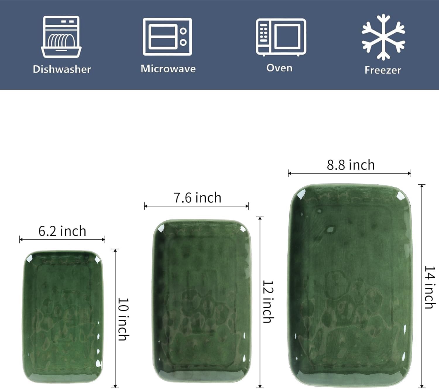 - DURABLE SERVING PLATTER SET: These ceramic rectangle dinner plates using only the highest-quality clay, which enable the porcelains to be much safer and healthier, sturdy and durable, you can safely use them in Microwave, Ovens, Freezer, and Dishwashers.