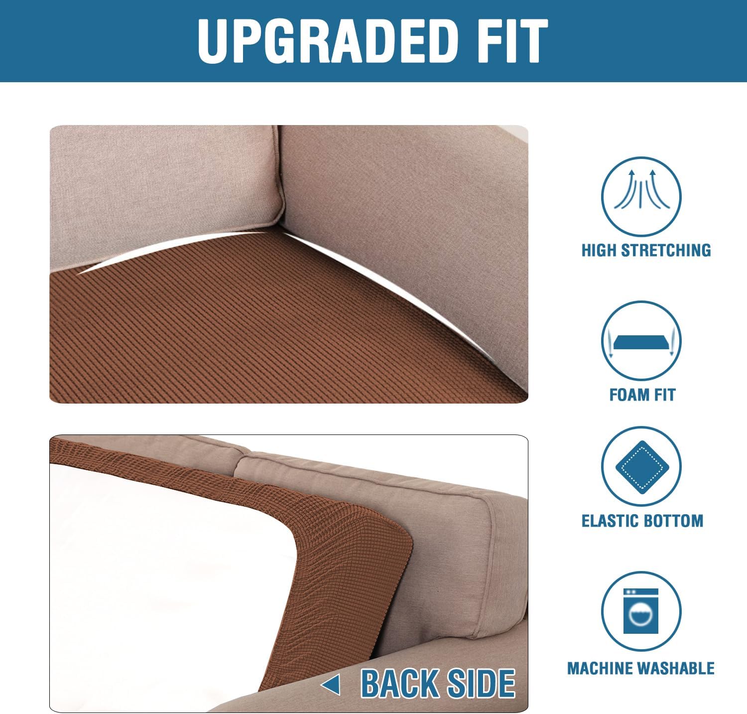 H.VERSAILTEX Super Stretch Individual Seat Cushion Covers Sofa Covers Couch Cushion Covers Slipcover Sets Thick Jacquard Textured Twill Fabric (1 Piece Loveseat Cushion Cover, Caramel)