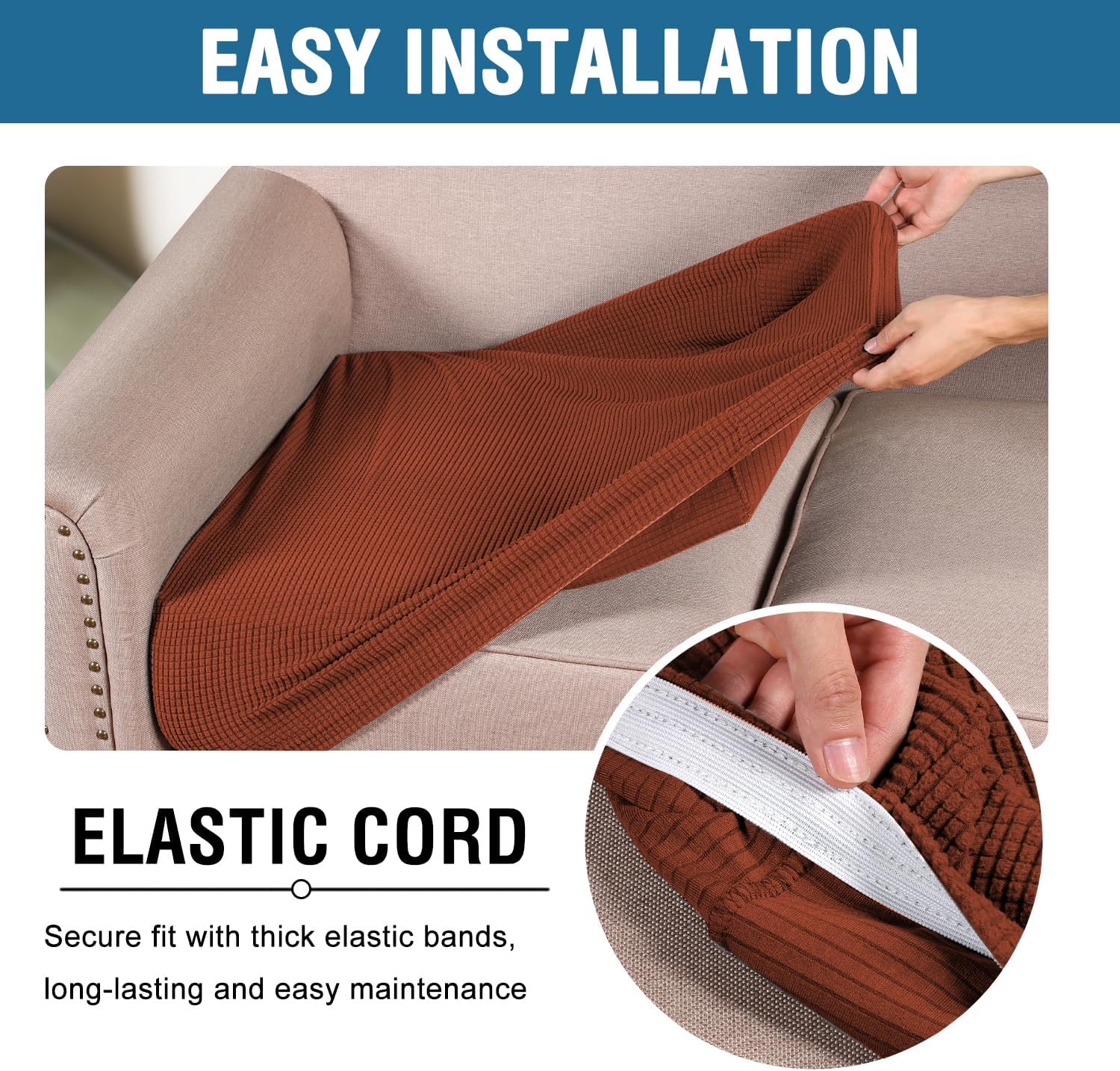H.VERSAILTEX Super Stretch Individual Seat Cushion Covers - Sofa & Couch Cushion Slipcover Sets - Thick Jacquard Textured Twill Fabric (3 Piece XL Sofa Cushion Covers, Rust)
