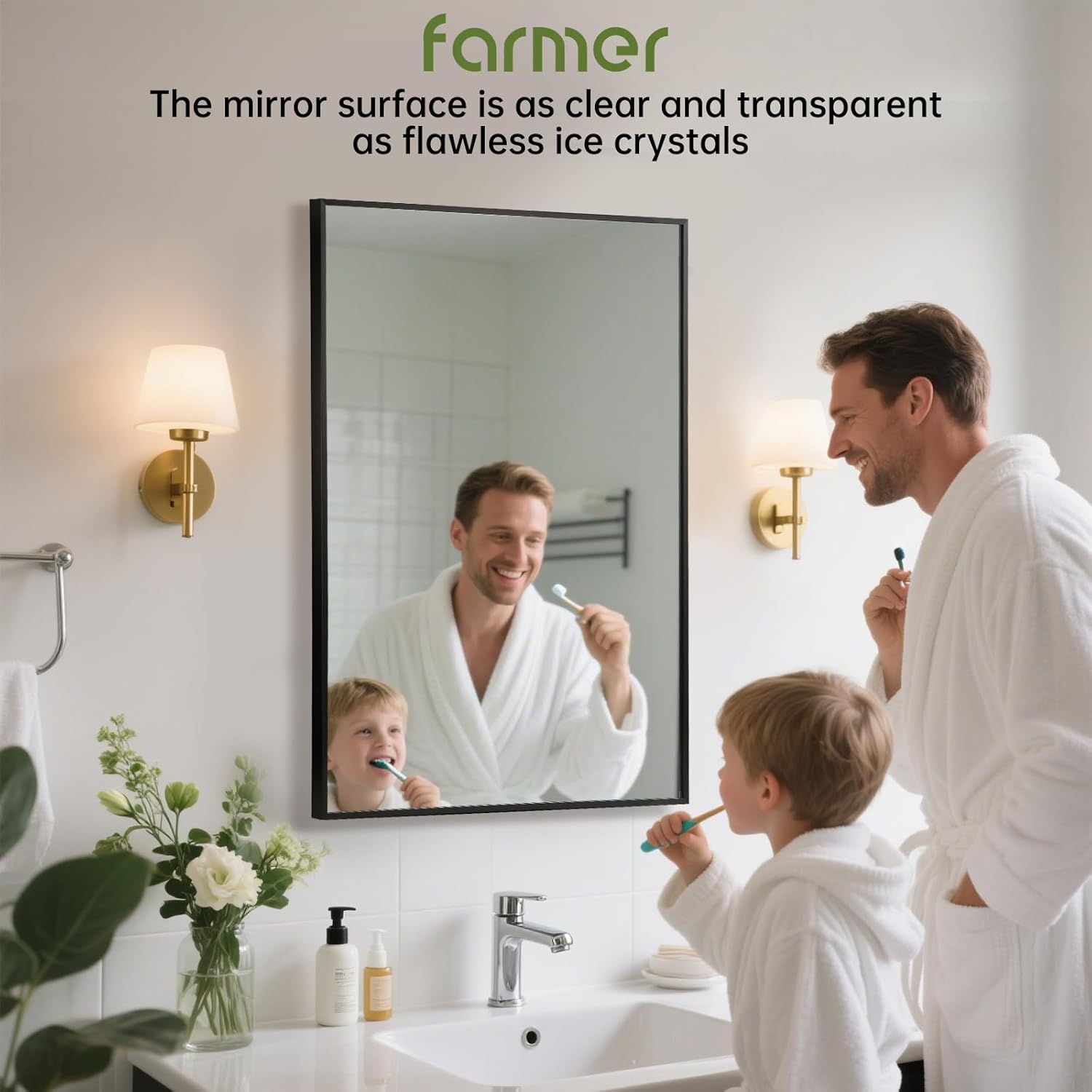 FARMER 26x38 Inch Black Bathroom Mirror, Rectangle Wall Mounted Mirror, Vanity Mirror, Brushed Square Mirror, Framed Bathroom Mirror for Bedrooms, Entryways, Living Rooms, Horizontal/Vertical