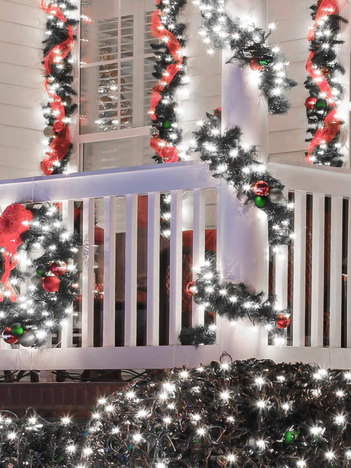 - Upgraded Solar Christmas Lights Outdoor : These solar string lights are equipped with super-bright LED beads and an enhanced solar panel for higher energy conversion. The green wire matches the color of your Christmas tree perfectly, while the LED lights create a cozy holiday atmosphere for your home. Each set contains 4pcs of string lights, each string light is 33ft long with 100LEDs + 4.9ft leading wire