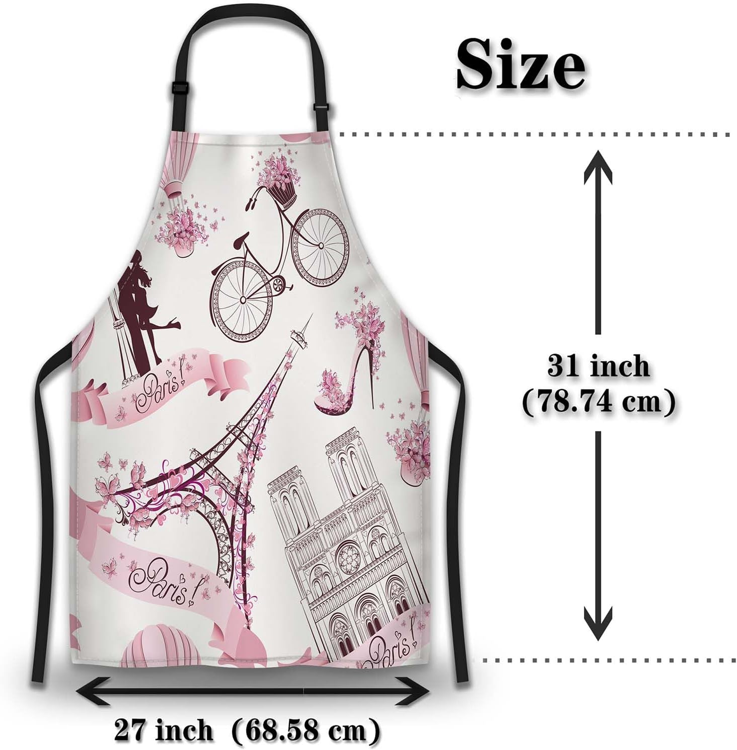 Chef Apron for Men Paris Symbols Cooking Aprons for Women for Kitchen Cooking Restaurant BBQ Painting Crafting 27” (W) x 31” (H), Waterproof Apron
