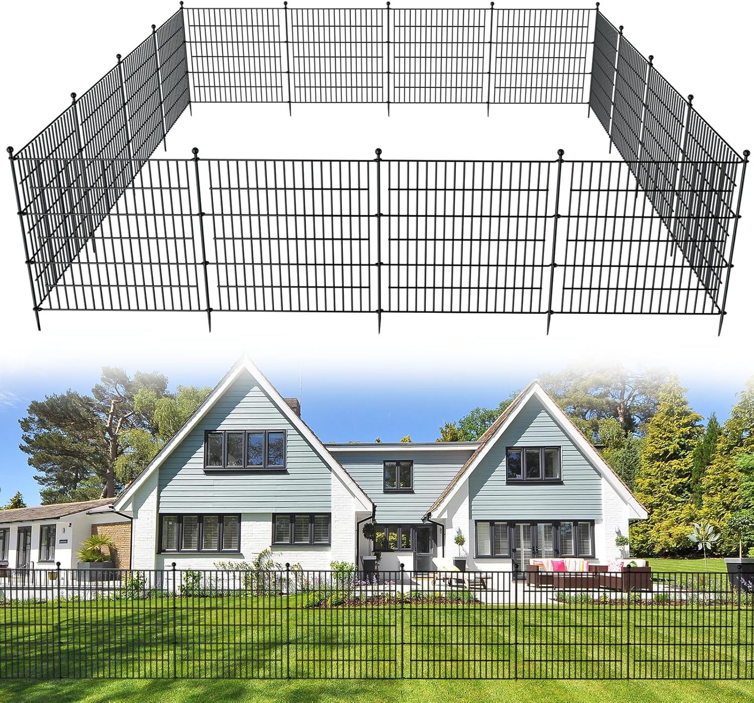 - SECURE & STURDY ANIMAL BARRIER>>The metal and spear-top pickets provide a strong physical barrier to deter intruders and keep pets like dogs and rabbits contained. Built to withstand harsh weather conditions, this fence ensures your garden remains protected year-round.