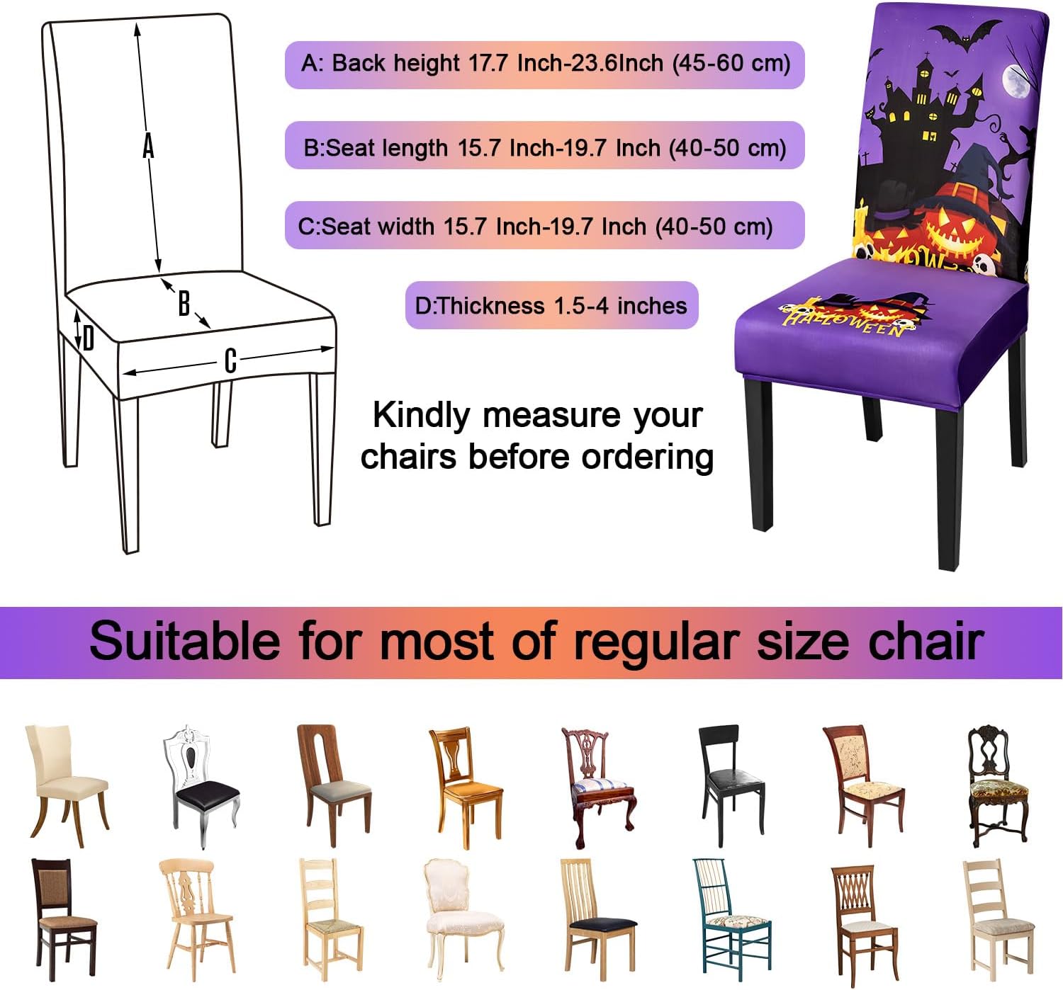 - 【🎃🎃🎃Versatile Halloween Essential】- The Christmas kitchen chair covers fit for most of parsons chair. Christmas dining room chair covers can be used for hotel,wedding banquet, dinner, meeting, celebration, ceremony, family dining room Christmas decoration. Whether you're decorating for a Halloween-themed wedding, a haunted house party, or simply adding some festive touches to your home, our slipcover is a versatile choice.