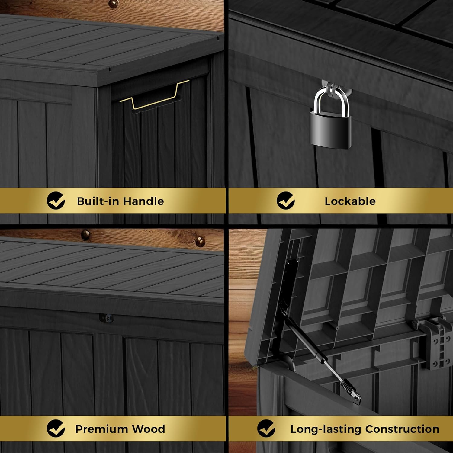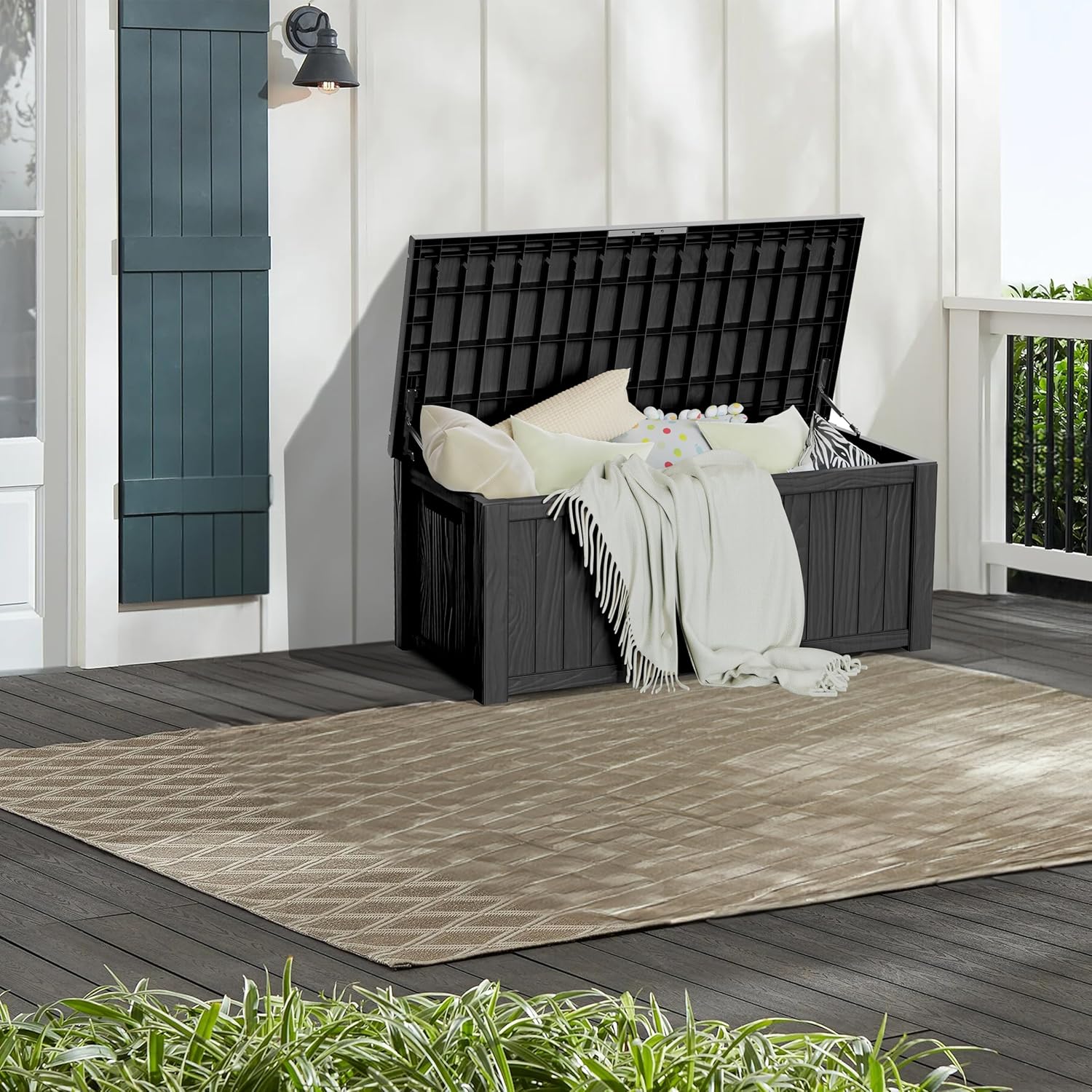 150 Gallon Lockable Resin Deck Box, Waterproof & UV-Resistant Outdoor Storage Box for Outdoor Cushion Storage, Garden Tools & Pool Accessories Storage, Black