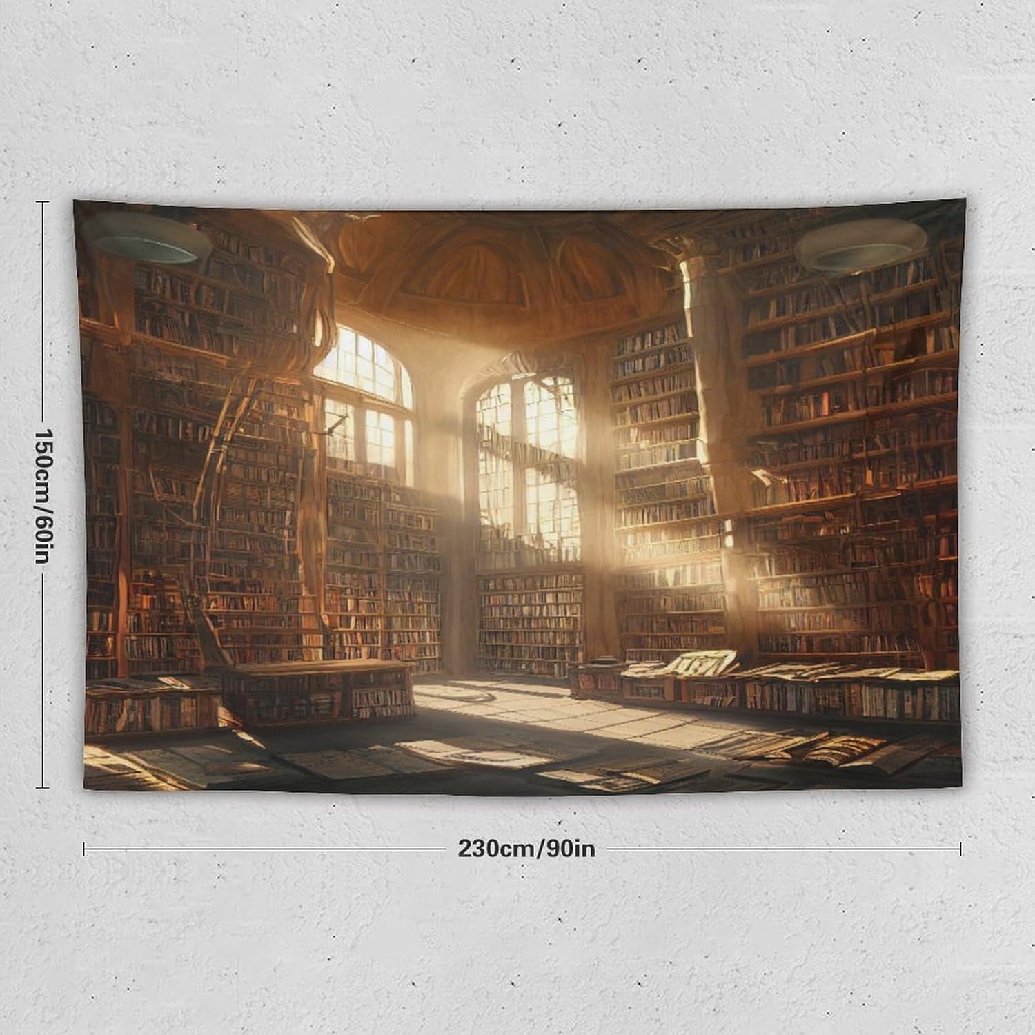 Kurtect Retro Bookshelf Tapestry,Medieval Mid Century Library Building Pattern Print Tapestries for Party Beach Picnic Blankets Tablecloths Living Room Wall Deocr, 60x90 in