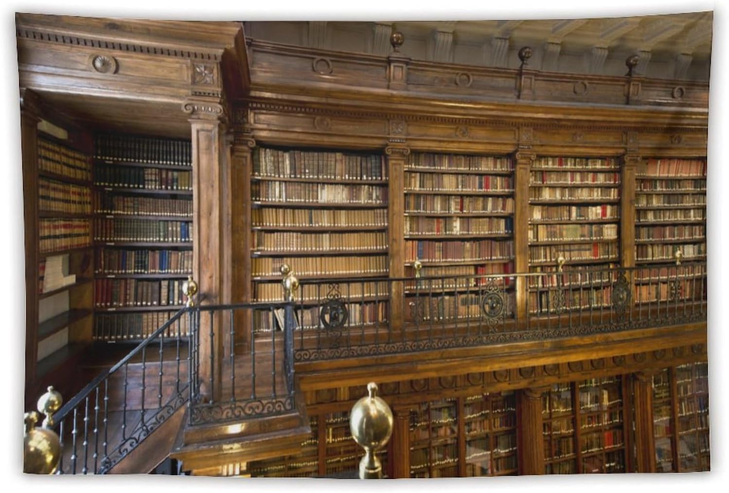 Kurtect Library Tapestry,Vintage Medieval Antique Bookshelf Bookcase Pattern Print Tapestries for Party Beach Picnic Blankets Tablecloths Living Room Wall Deocr, 40x60 in