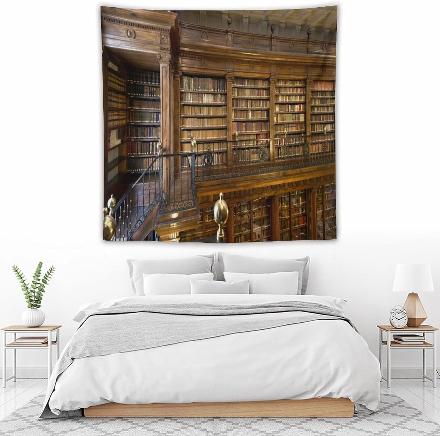 Kurtect Library Tapestry,Vintage Medieval Antique Bookshelf Bookcase Pattern Print Tapestries for Party Beach Picnic Blankets Tablecloths Living Room Wall Deocr, 60x60 in