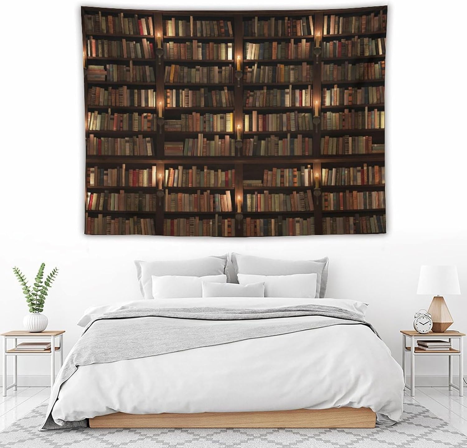 Kurtect Bookshelf Tapestry,Retro Library Bookcase Antique Mid Century Pattern Print Tapestries for Party Beach Picnic Blankets Tablecloths Living Room Wall Deocr, 60x80 in
