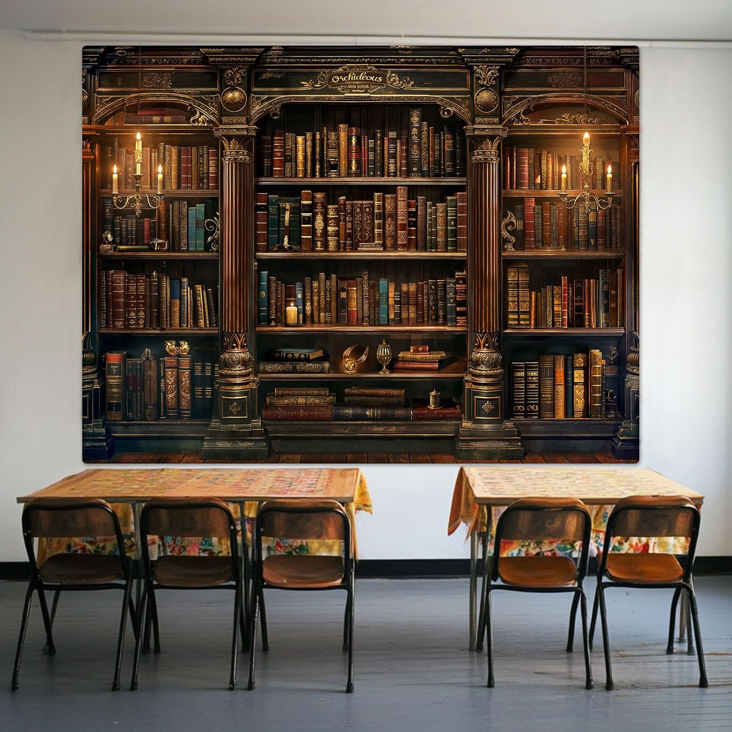 - Elegant Vintage Design: This vintage bookshelf tapestry features a detailed, classic bookshelf design with rich colors and intricate patterns, perfect for adding a touch of sophistication to any room