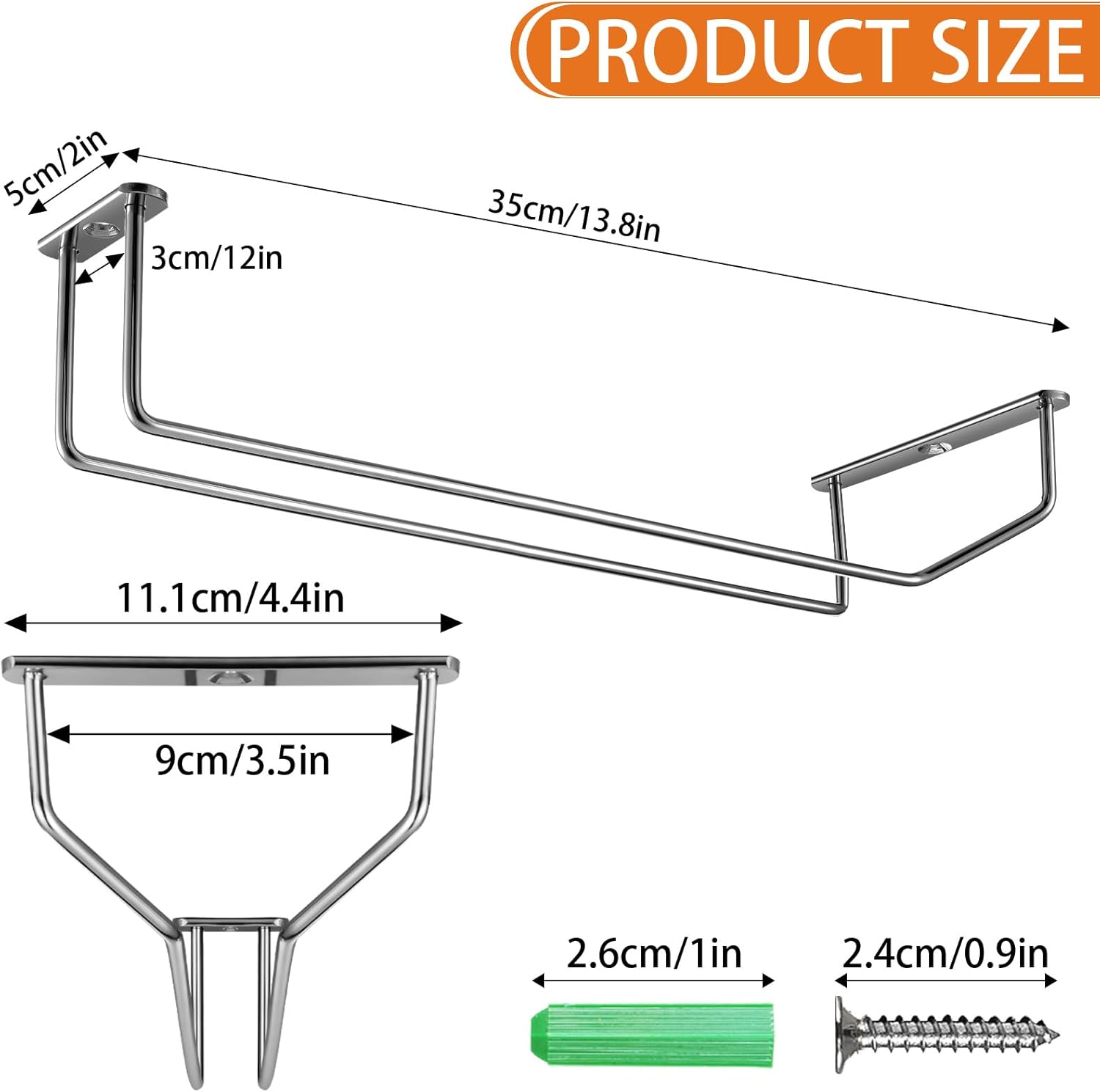 - 【Package Include】- You will receive a total of 5 set of hanging wine glass rack, each rack is L35 x W11.1 x H5cm (13.8x4.4x2 inches), comes with 8 screws and 8 plugs, this will be a perfect combination for easy installation.