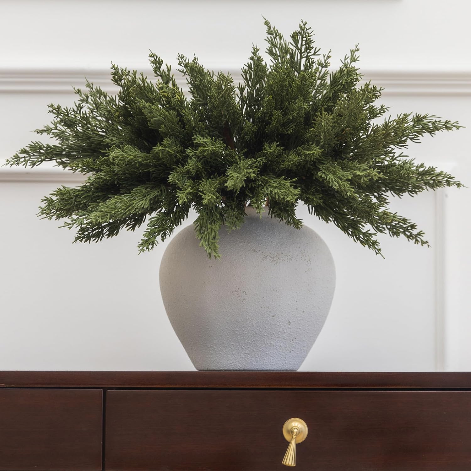 - 【Premium Quality and Natural Appearance】Crafted from high-quality PE, these branches mimic the natural green color of real cedar, offering both aesthetic beauty and durability. After opening the package, simply let the product air out for a few hours to eliminate any initial odor, ensuring a better experience. Note: Vase not included.