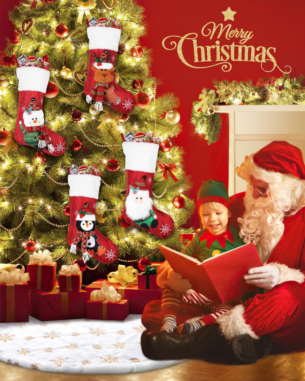 - Soft and warm material: This Christmas tree skirt is made of artificial fur, double-layer design, non-woven fabric on the back, white artificial fur and silver sequins embroidered snowflakes on the front, high-quality plush fabric material, soft and comfortable texture.