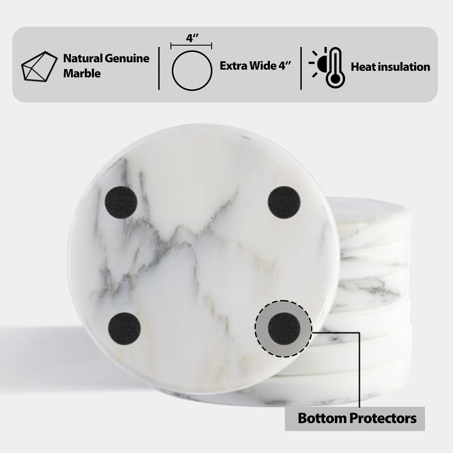 - Extra Wide ---- Set contains 6 pieces of marble coasters with size 4 x 4 x 0.35 inch, the perfect size will comfortably hold any wine glass, cup, or coffee mug, providing ample space to catch drips and condensation, making it versatile for normal drinkware