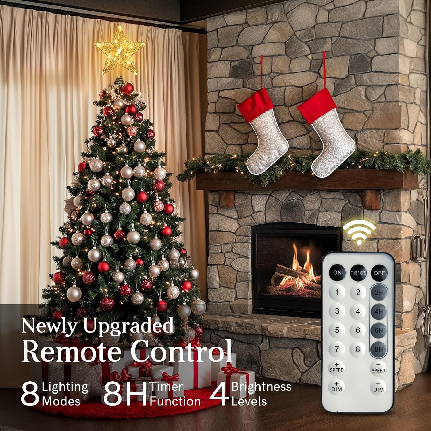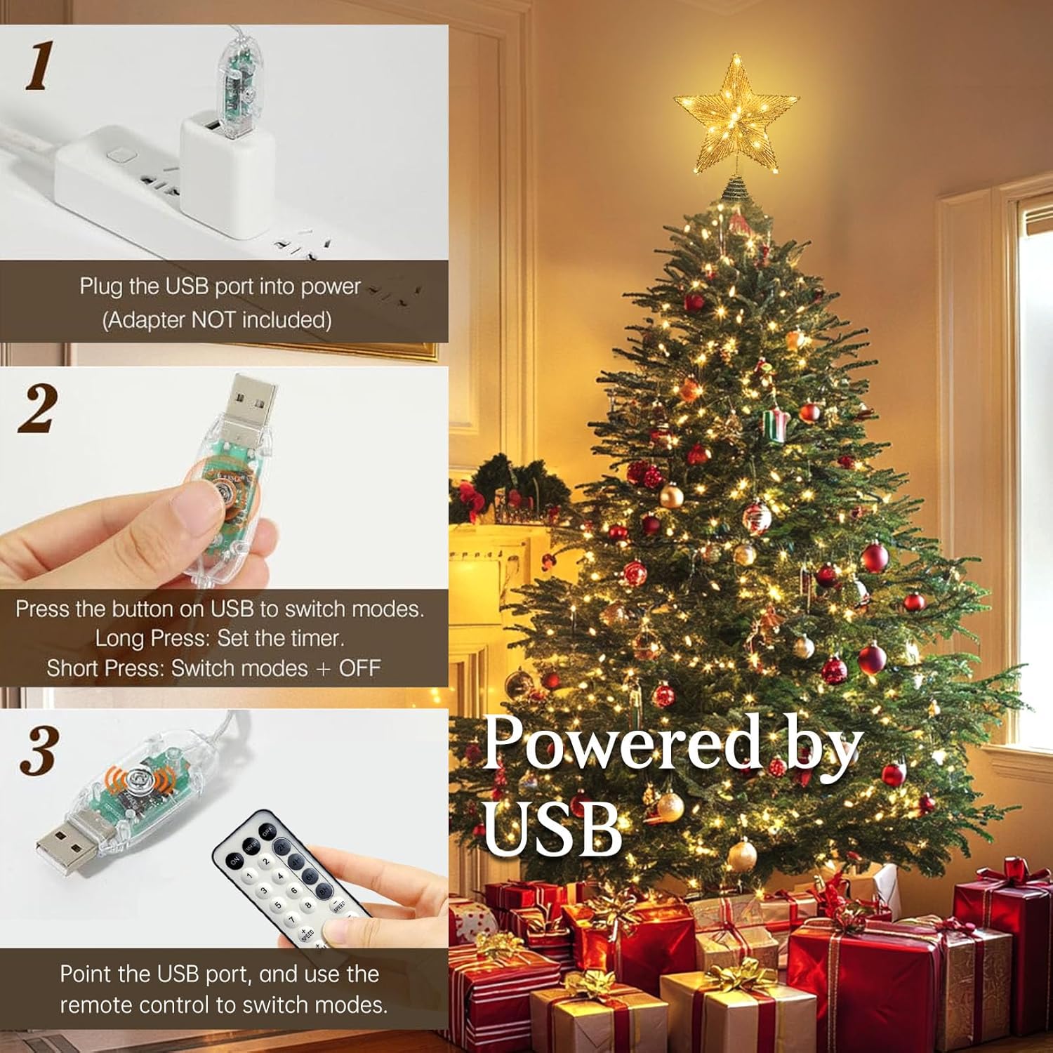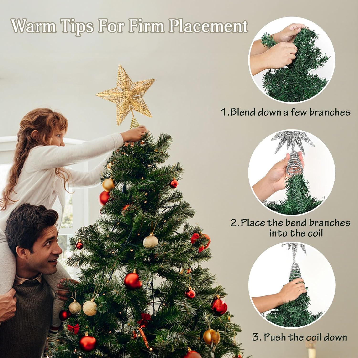 - π EASILY SETUP: 5m/16.4ft long line, which means it works great either indoor or outdoor.The tree topper easily attaches to the tree, due to the stable spiral base and construction