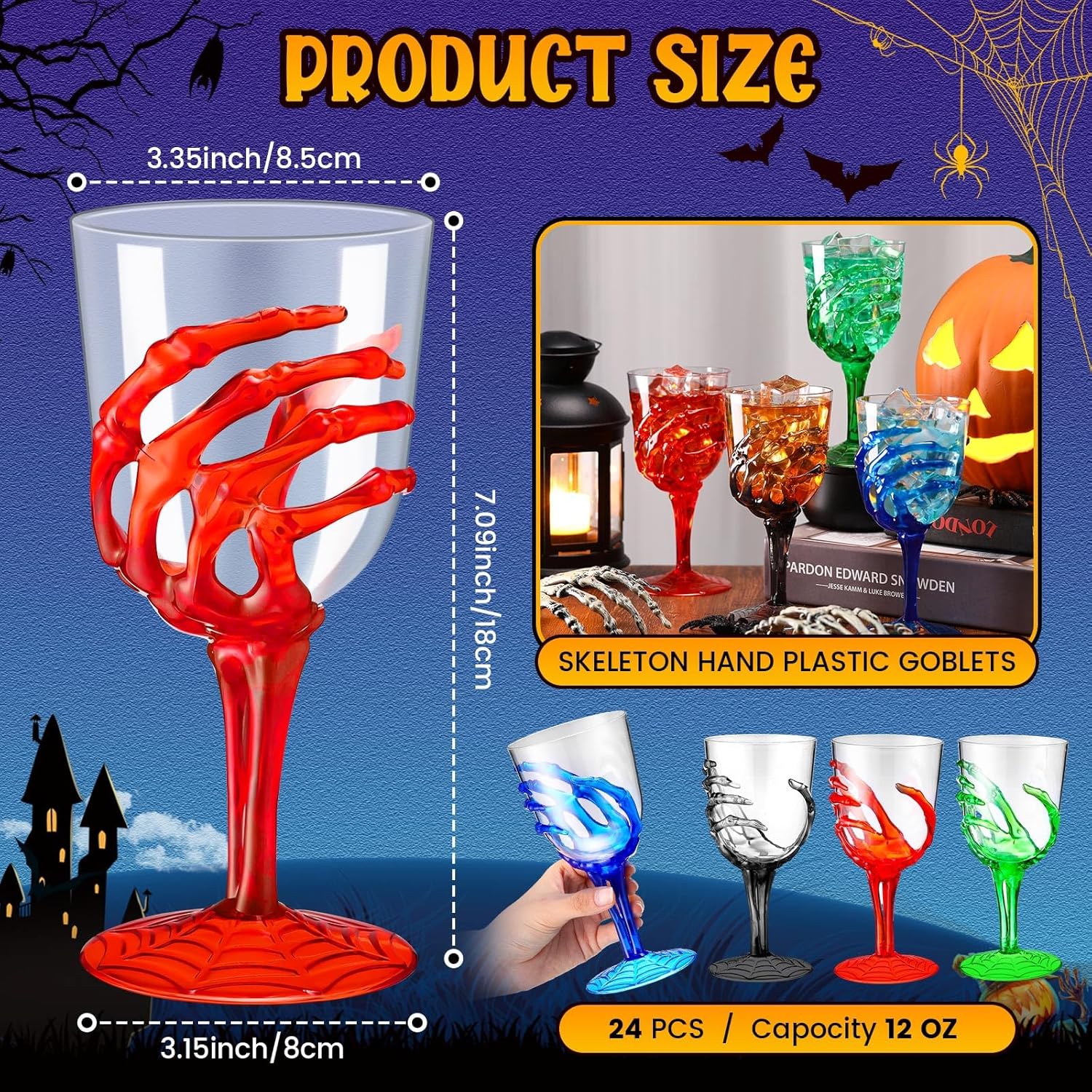 - Wide Applications: these Halloween plastic stemmed glasses can be applied for many occasions, such as Halloween parties, haunted houses, festivals, ceremonies, and various other themed events; You can fill them with a wide variety of items, including wine, champagne, cocktails, juice, soda, candy, and more