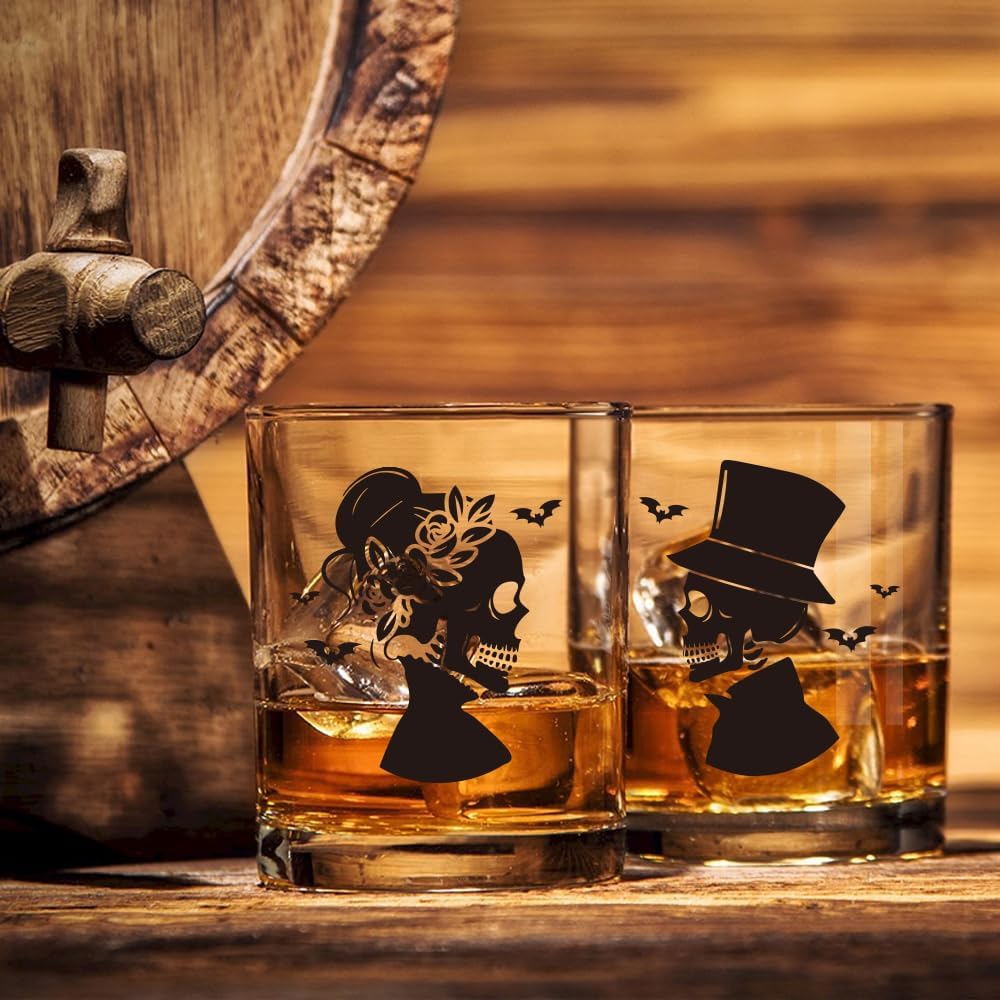 - This funny couple skull whiskey glass is a creative gift for husband and wife, suitable as a gift for newlyweds, Valentine's Day, anniversaries, Halloween