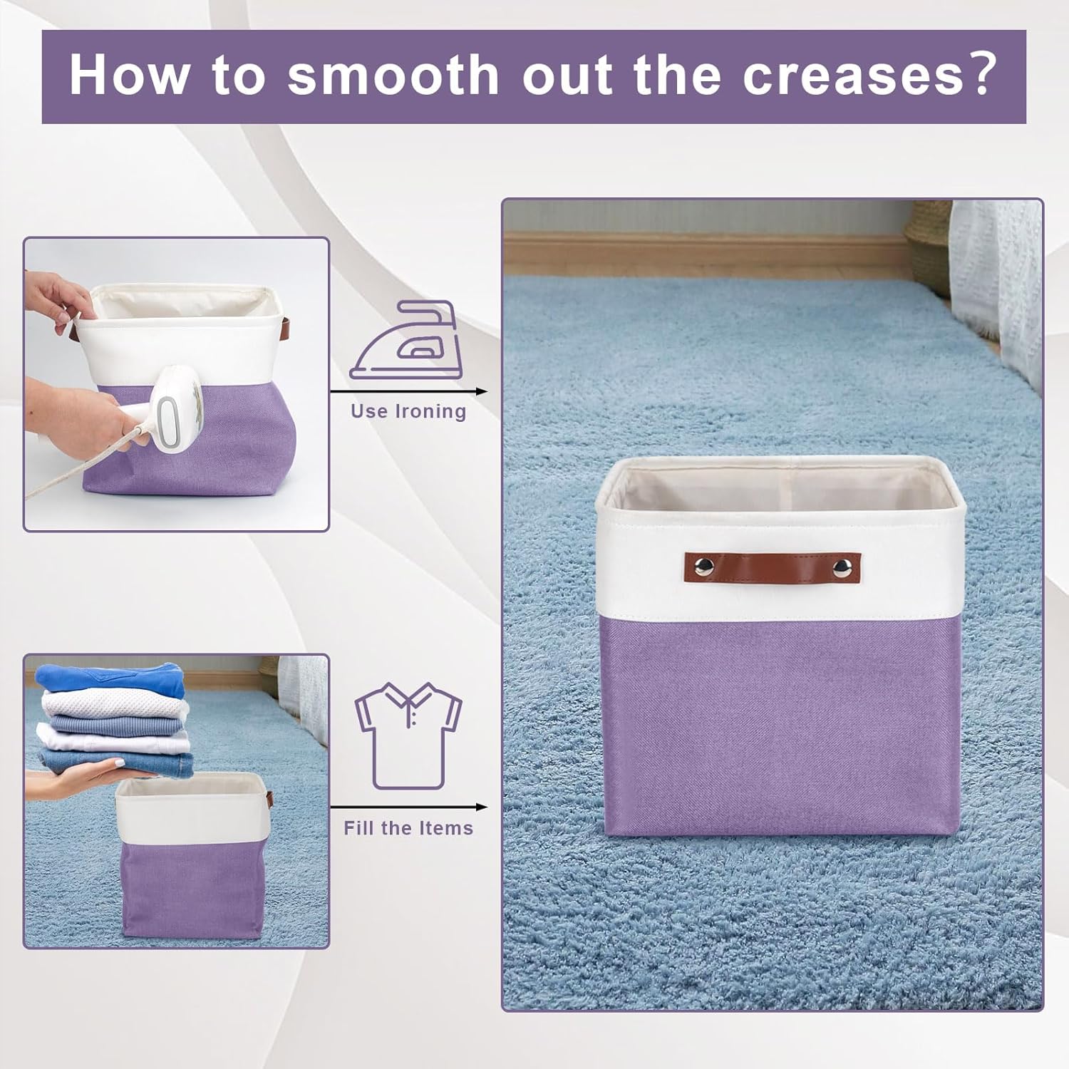 Collapsible Fabric Storage Cubes 11x11 Cube Storage Bins, 4 Pack Closet Baskets Box with Handles for Organizing, Shelf, Toys, Clothes, Home, Office, Nursery (Purple&White)