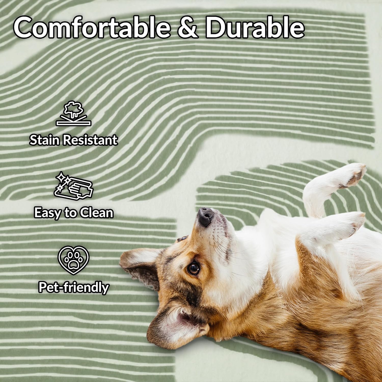 Zen Garden Area Rug - Ultra Soft Area Rug 4x6, Non Slip, Stain Resistant Living Room Rug, Washable Area Rugs for Living Room, Rugs for Bedroom (Green, 4x6)