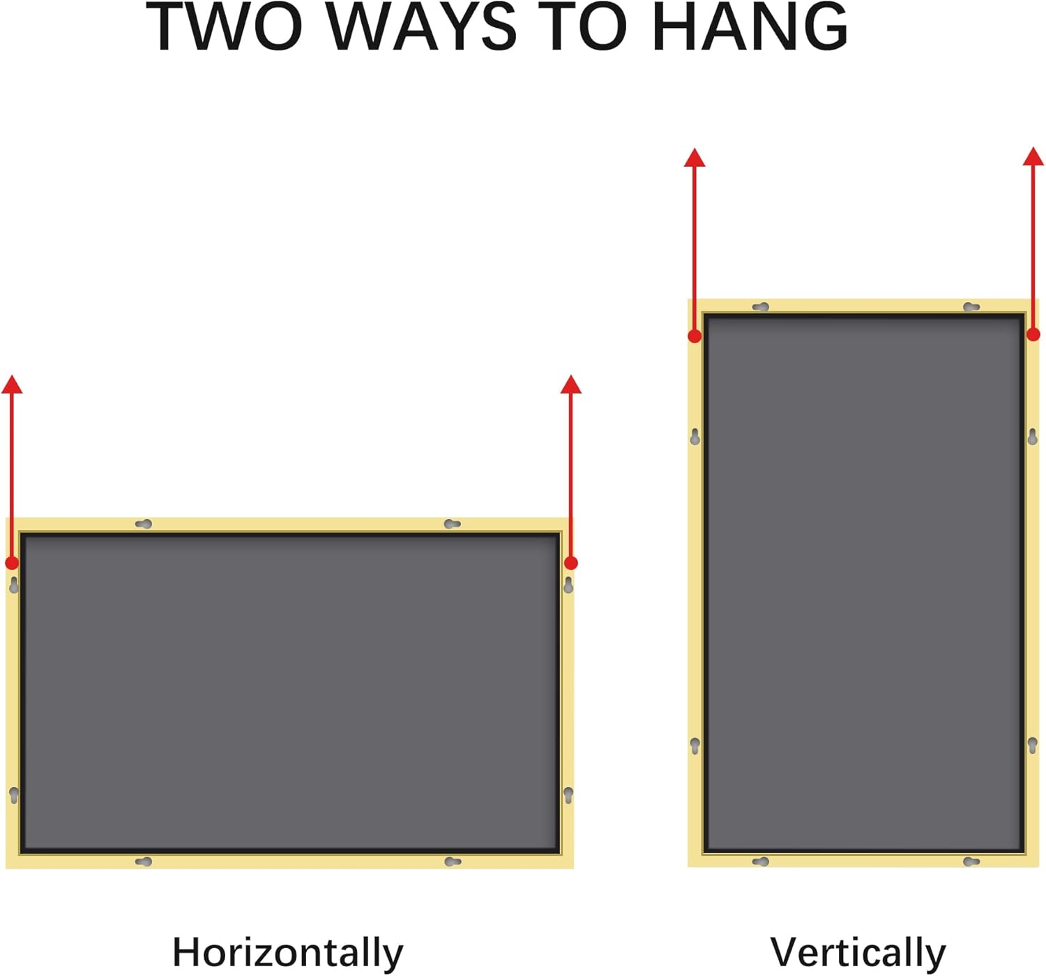 - Note: The mirror supports both horizontal and vertical mounting. Mirror installation requires the use of two sides of the mounting holes, refer to the installation pictures (single side frame can not withstand the weight of the mirror)