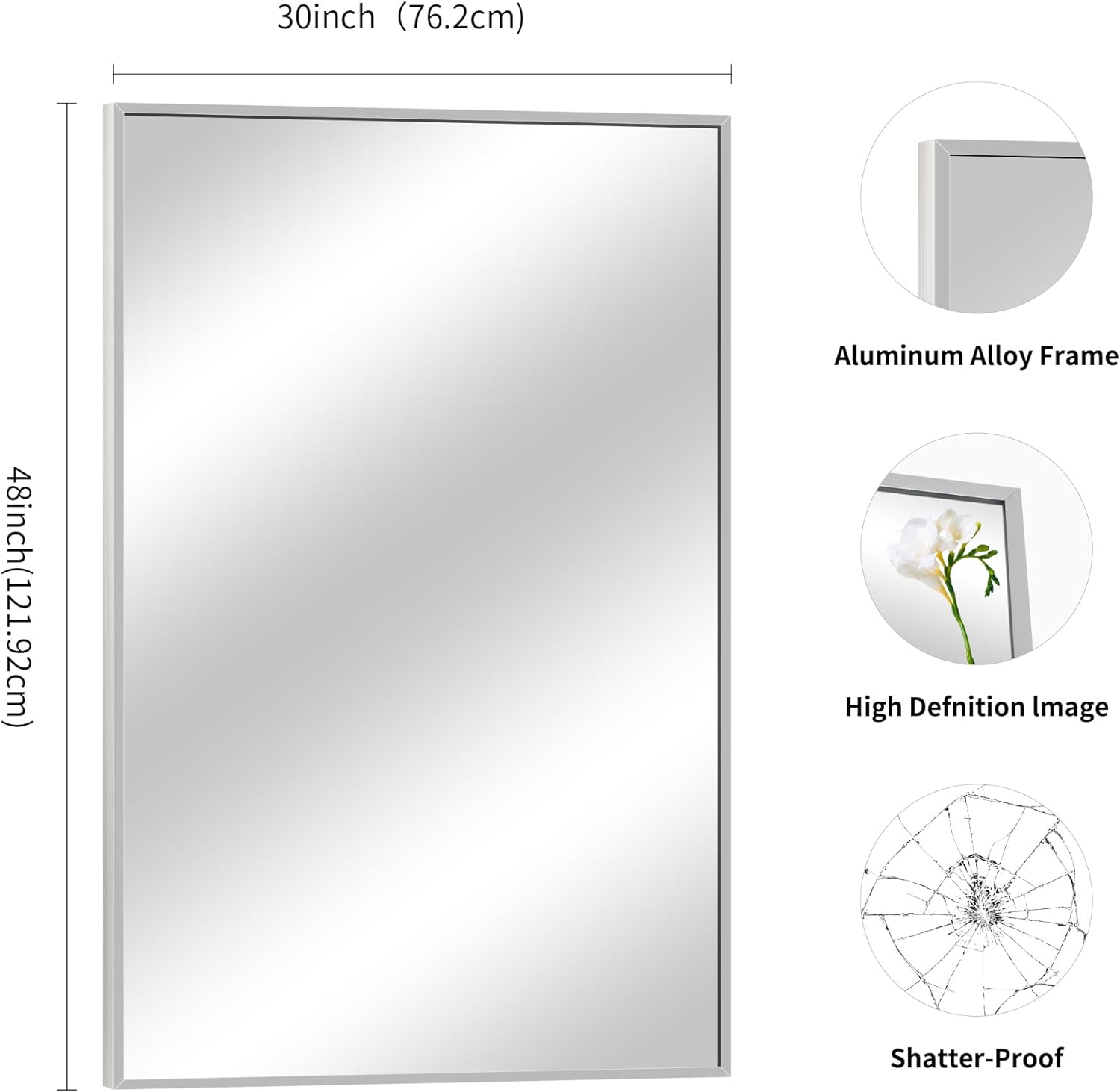Silver Bathroom Mirror for Wall, 30x48 Inch Rectangle Mirrors with Metal Frame, Modern Vanity Wall Mirror Decor for Bathroom Living Room, Entryway Hangs Horizontal or Vertical