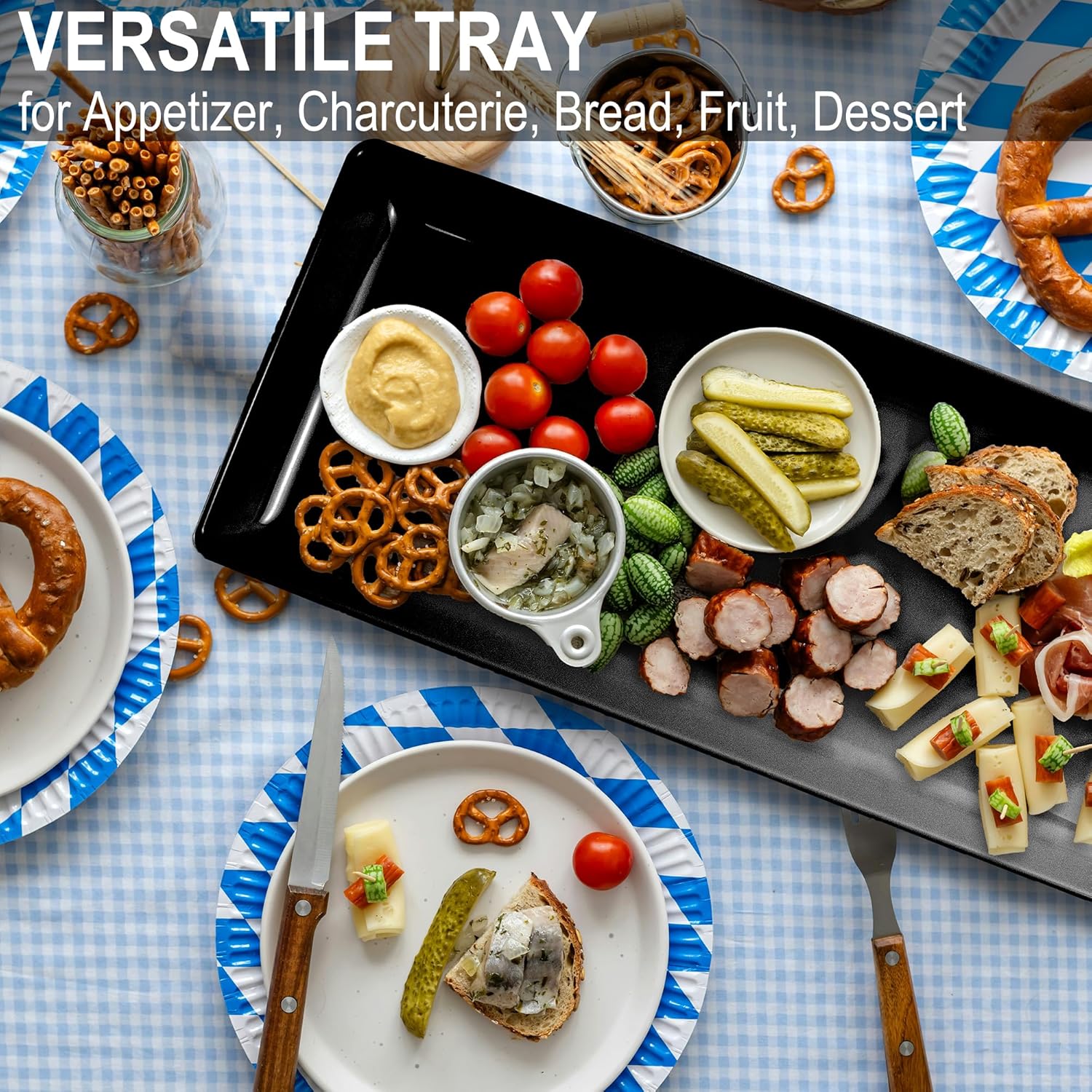 Long Melemine Serving Tray, 17.3x8x1.5 in Serving Platters and Trays for Appetizer, Charcuterie, Bread, Fruit, Dessert, Set of 2, Black