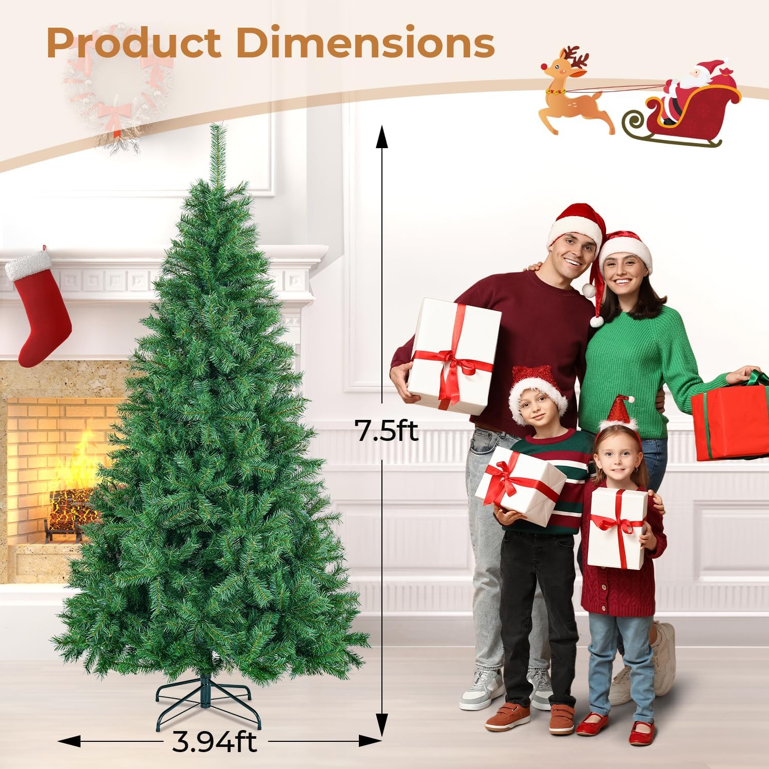 7.5 ft Artificial Christmas Tree with 1300 Branch Tips, Holiday Xmas Tree with Foldable Base and Easy Assembly, Outdoor Christmas Trees for Yard Porch Home Office Party Decoration, Green