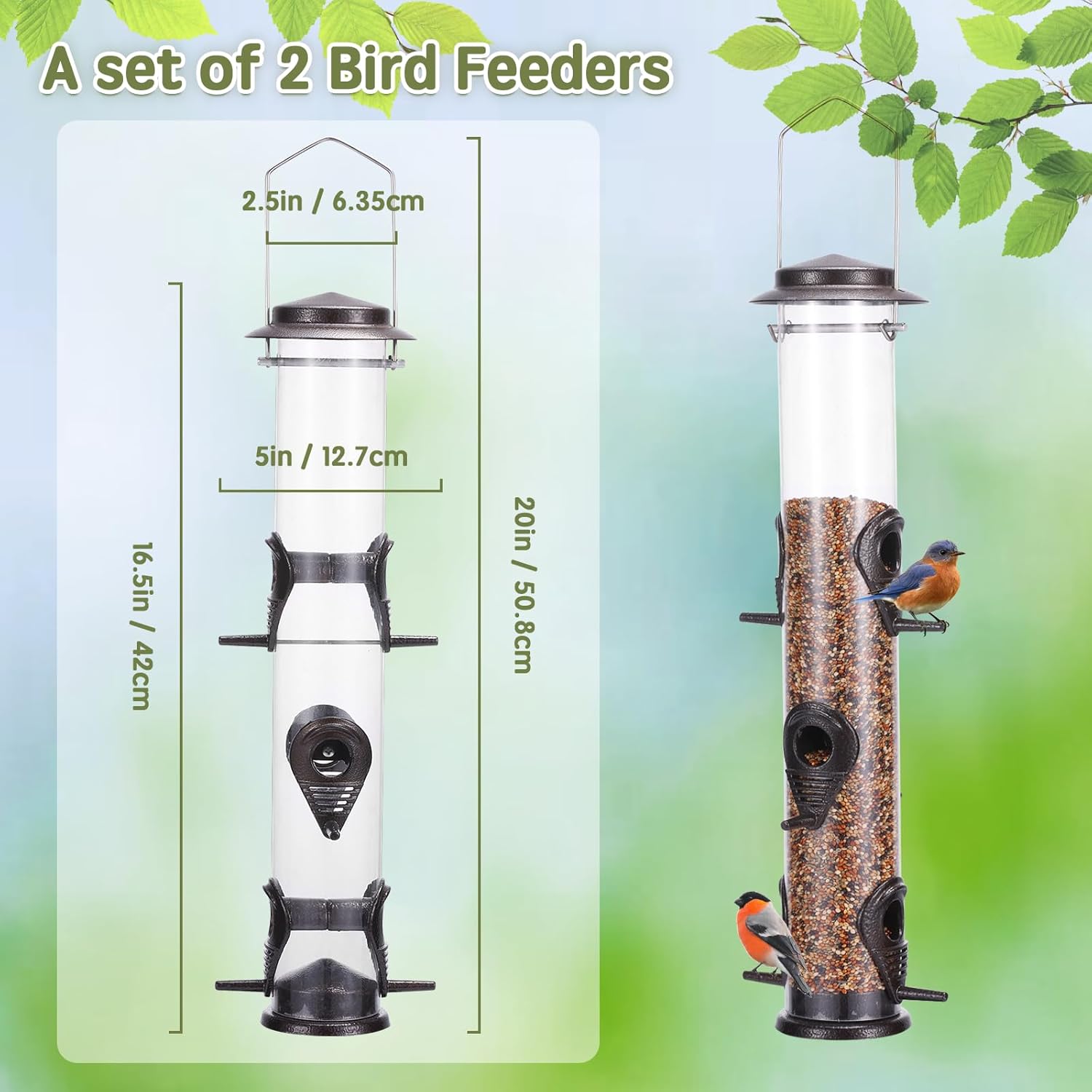 - Size of hanging bird feeder: The size of bird feeders for outdoors hanging is 5 x 5 x 20 inch.You can use tube bird feeder easily without installing any tools, and you can also move it freely. This tube bird feeders for outdoors hanging is very convenient
