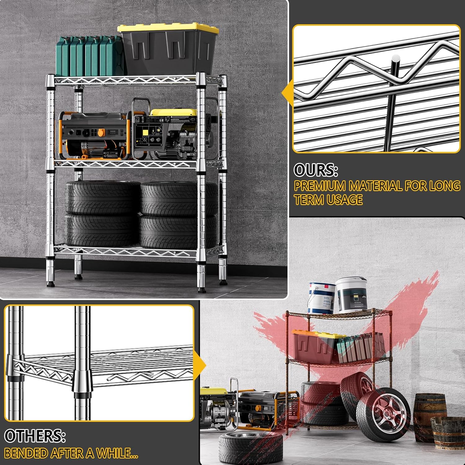 - PREMIUM QUALITY MATERIALS: Crafted from high-quality carbon steel. This series of storage shelves has 19.1mm pipes, which greatly improves its load-bearing capacity, and ensures its stability and durability. Each shelf holds up to 250 LBs