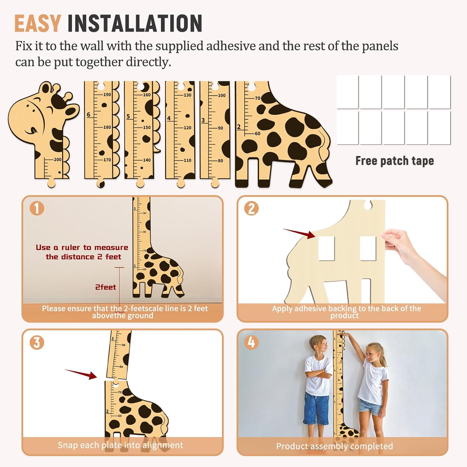 - Easy to install:measure 23.62 inches/ 60 cm from the wall and make a mark with a pencil,place the 60 cm mark on the growth chart with the mark on the wall and put at least 2 long tapes on the back of each growth chart,press the chart to the wall where you marked it previously position,so that it sticks firmly to the wall
