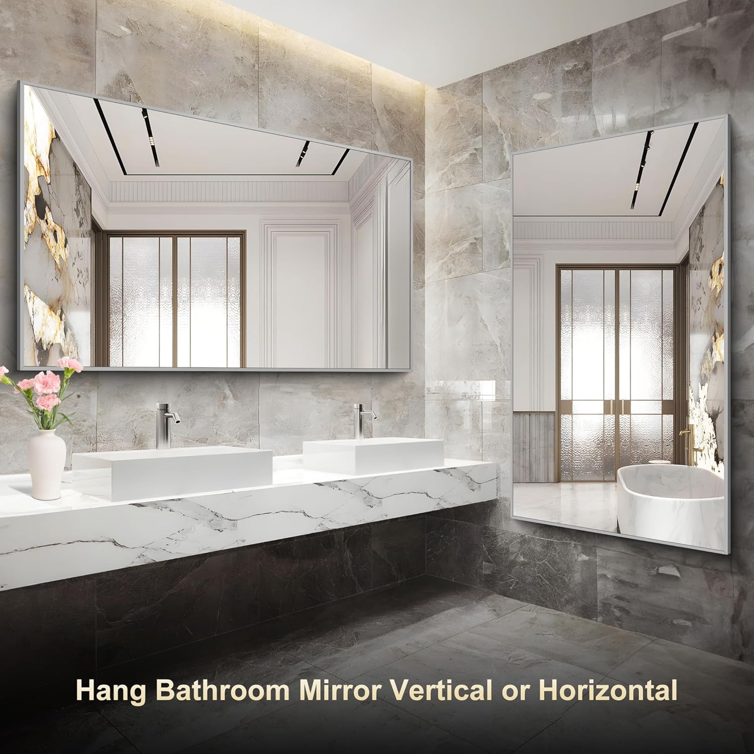 36x60inch Brushed Nickel Bathroom Mirror, Silver Rectangle Mirror with Frame, Large Rectangular Wall Mirrors for Bathroom, Living Roomm, Hair Salon, Big Mirror Hang Horizontal/Vertical