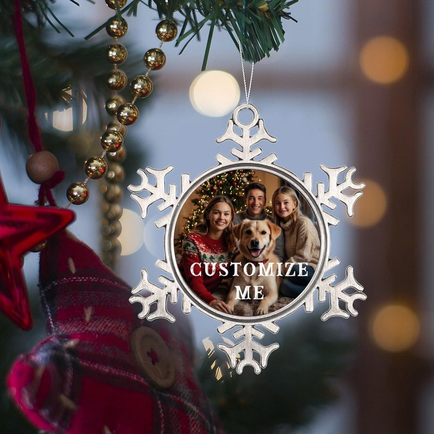 Personalized Christmas Ornaments - Custom Picture & Text Ornaments for Christmas 2024, Baby's 1st Christmas Ornament with Picture for Xmas Tree Custom Gifts for Family, Mom, Dad, Friend (Snowflake)
