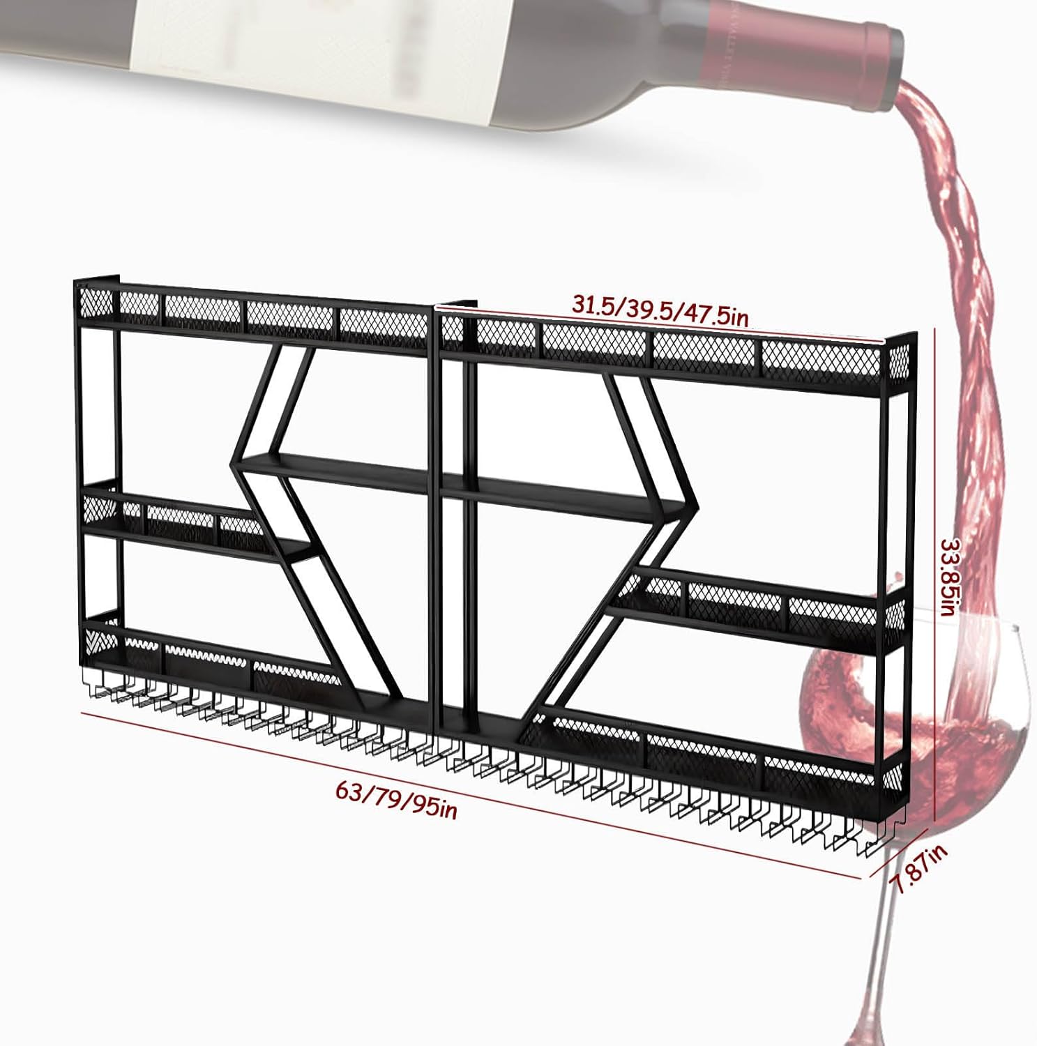 - MODERN DESIGN: Wall-mounted wine rack featuring an eye-catching diamond-shaped pattern and sleek black metal construction for contemporary home decor