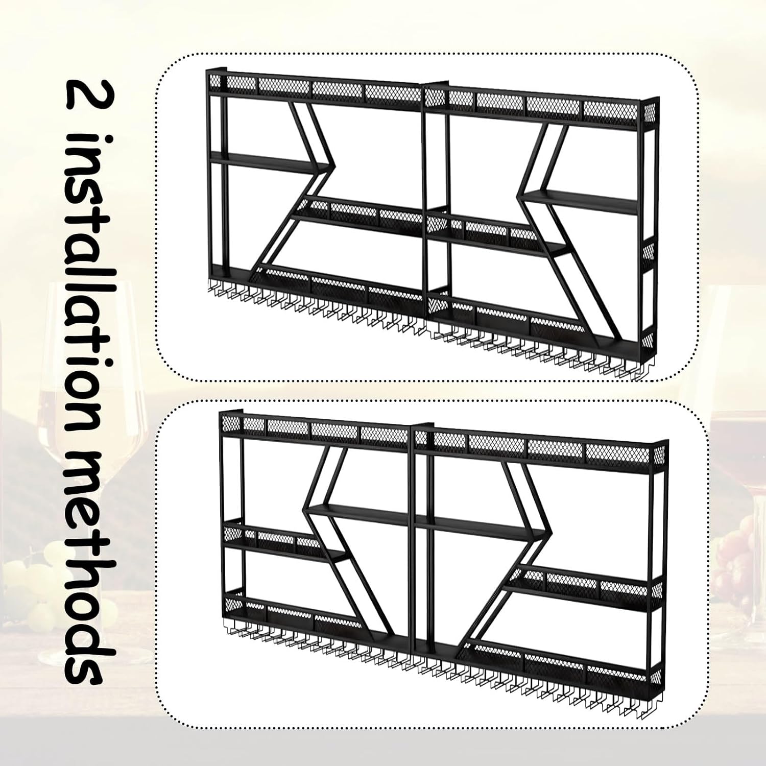 - VERSATILE DISPLAY: Multi-functional shelving perfect for wine bottles, stemware, and decorative items, ideal for home bars, restaurants, or entertainment areas