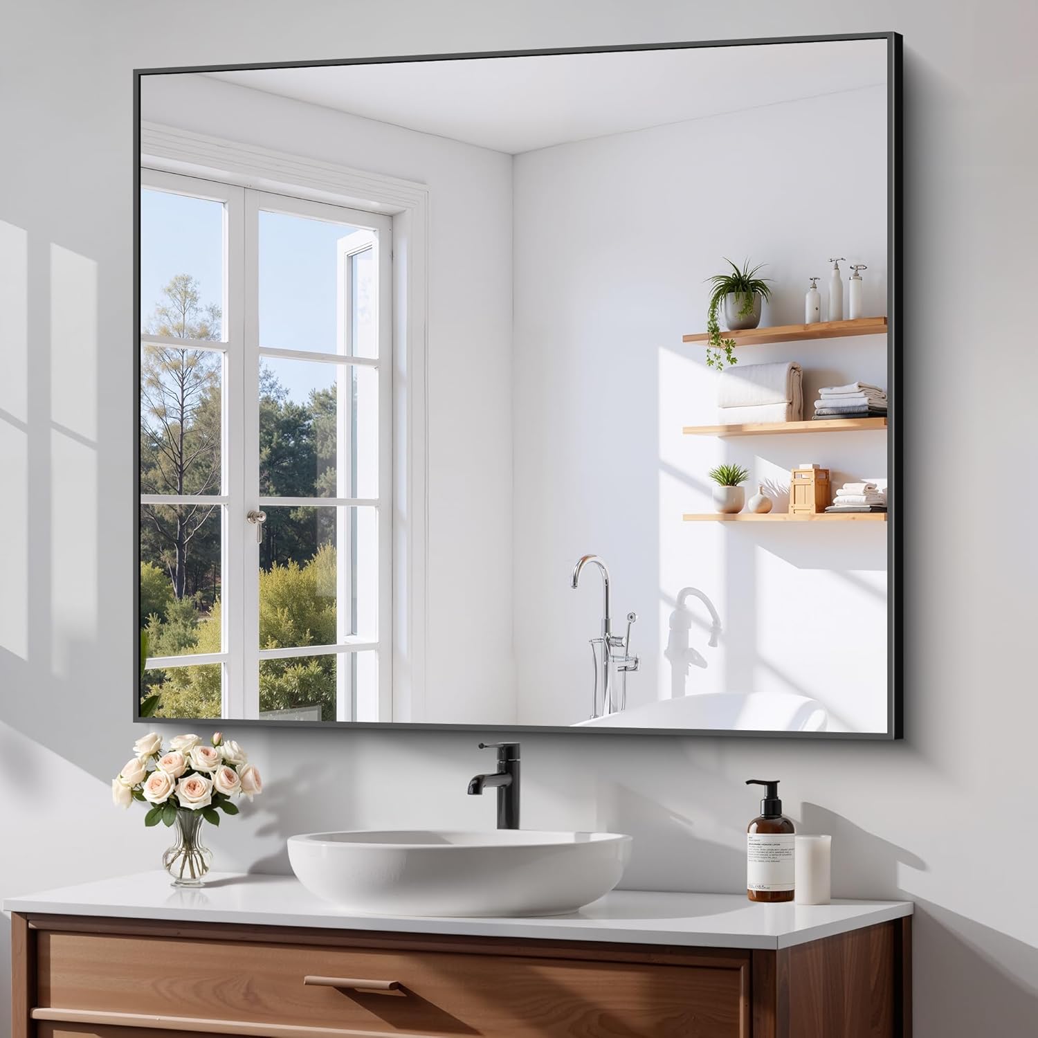 Black Bathroom Mirror for Wall, 36x40 Inch Rectangle Mirrors with Metal Frame, Modern Rectangular Wall Mirror for Bathroom Living Room, Entryway Hangs Horizontal or Vertical